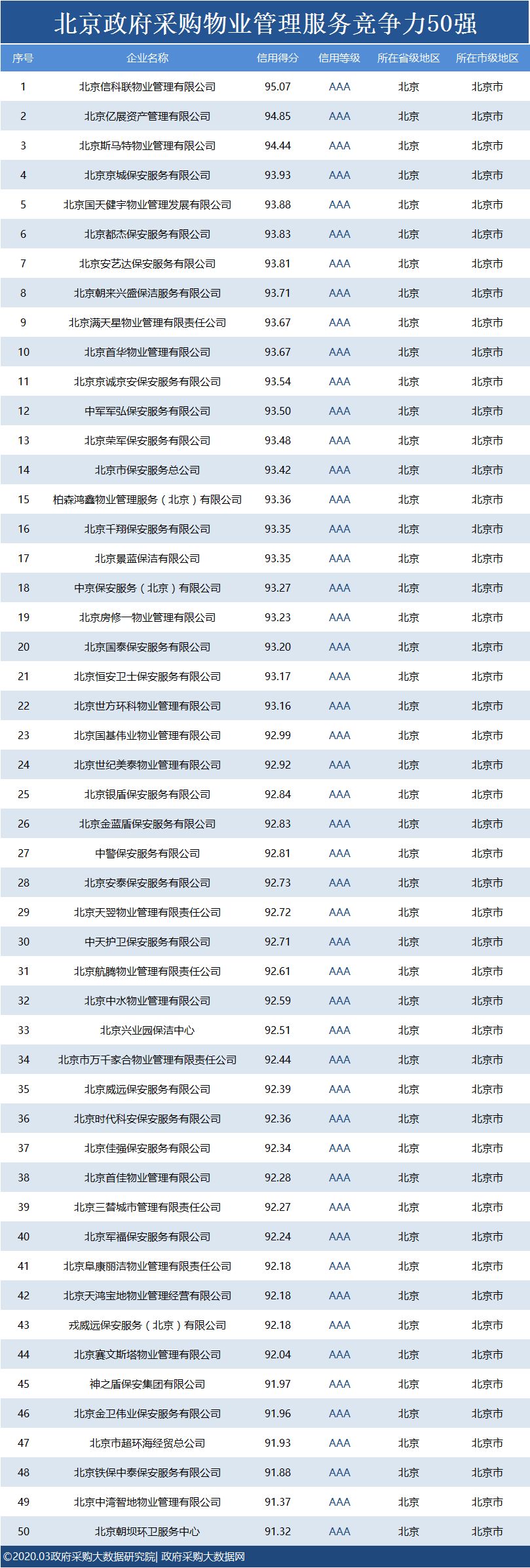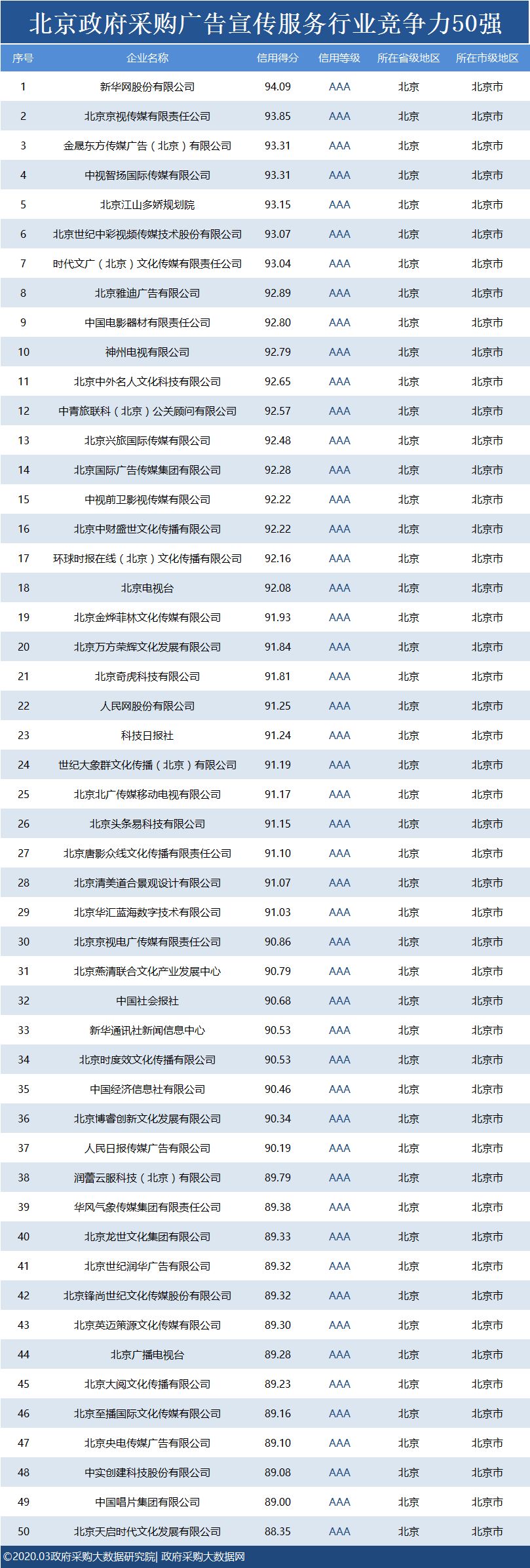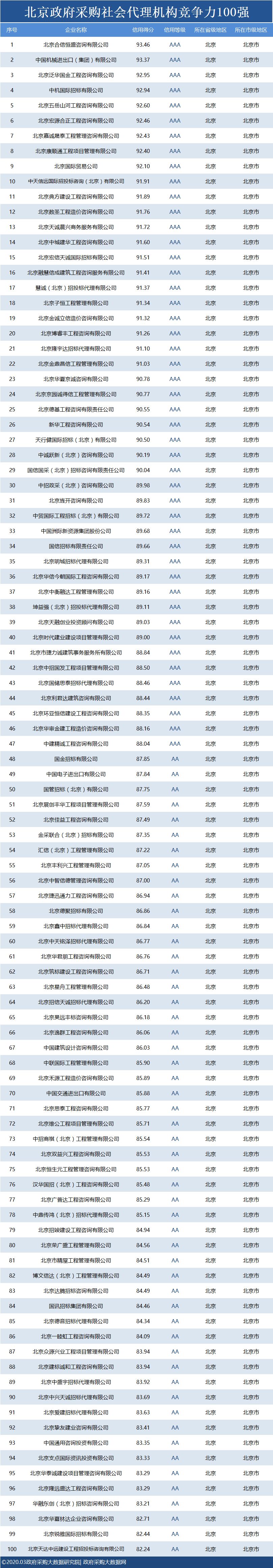 政府采购大数据研究院和政府采购大数据网联合发布:北京政府采购社会代理机构竞争力100强&行业竞争力100强。数据评估区间:2019年01月01日至2019年12月31日。公示时间:2020年03月11日至2020年03月17日。