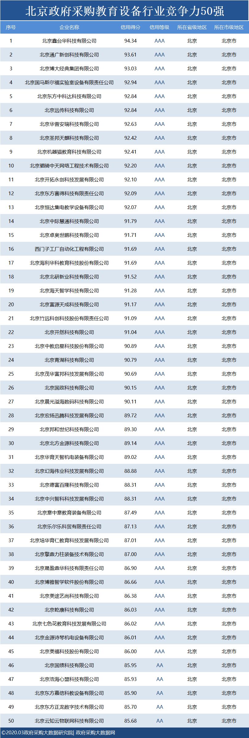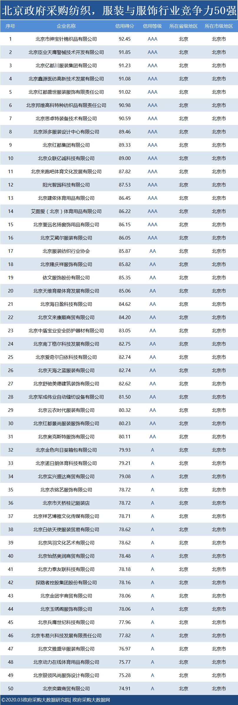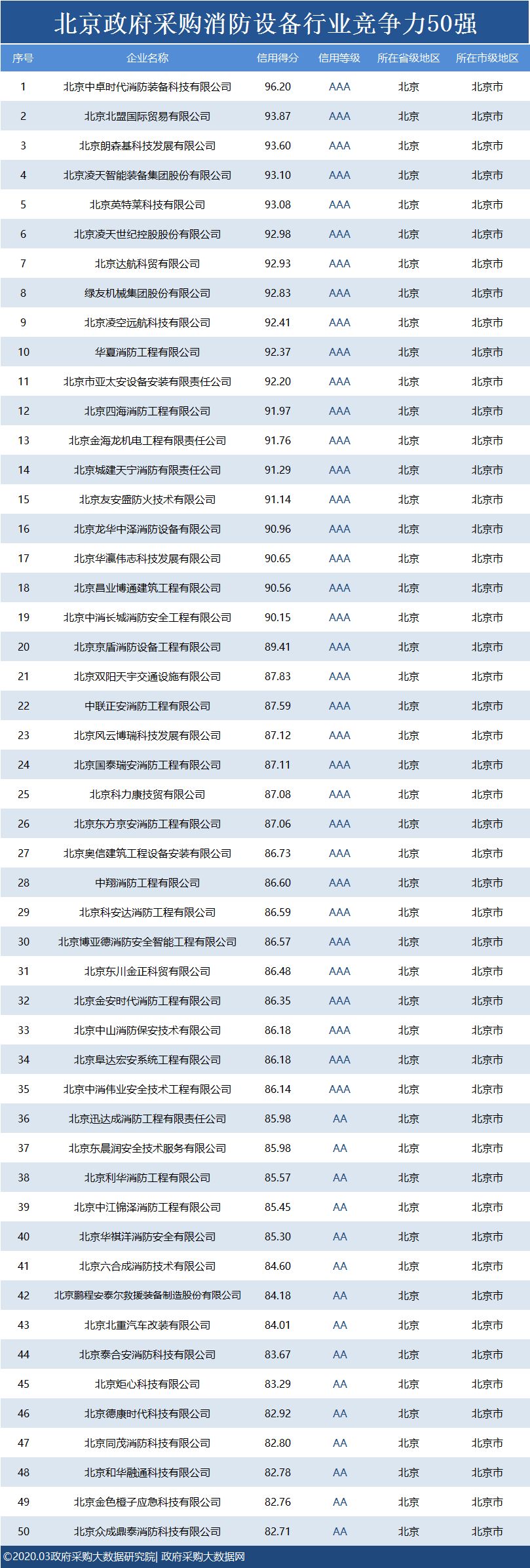 政府采购大数据研究院和政府采购大数据网联合发布:北京政府采购社会代理机构竞争力100强&行业竞争力100强。数据评估区间:2019年01月01日至2019年12月31日。公示时间:2020年03月11日至2020年03月17日。