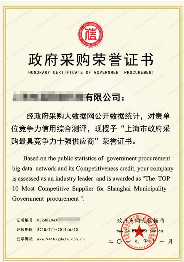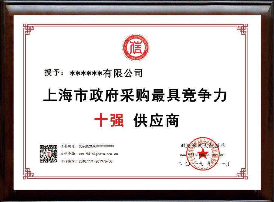 政府采购大数据网可为上榜企业出具荣誉证书(包含信用报告&证书&牌匾)。解释权归政府采购大数据研究院所有。