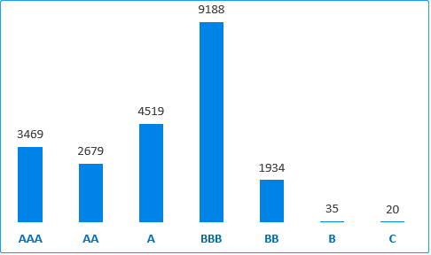 纵观榜单,北京市政府采购竞争力企业信用等级AAA级共有3469家,占总体样本的20.69%。A级及以上信用等级单位10667家,占总体样本的48.32%。B级及以上信用等级单位21824家,占总体样本的99.91%。数据显示,北京市政府采购总体上企业竞争力信用表现良好。