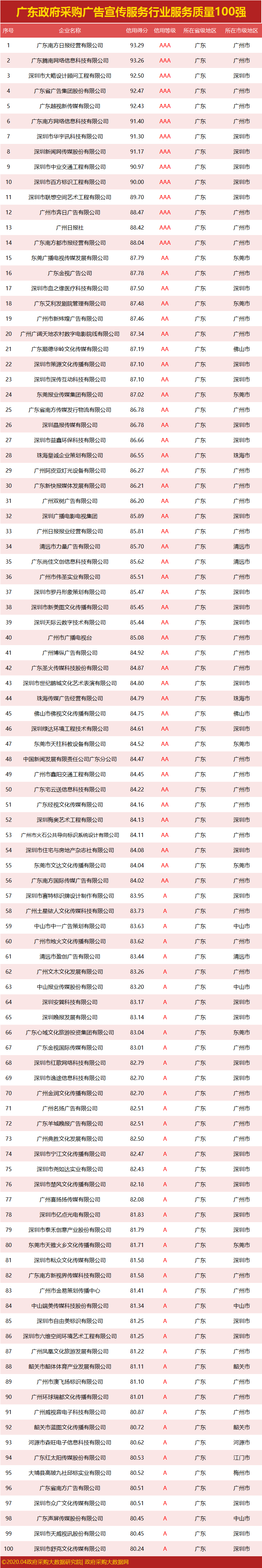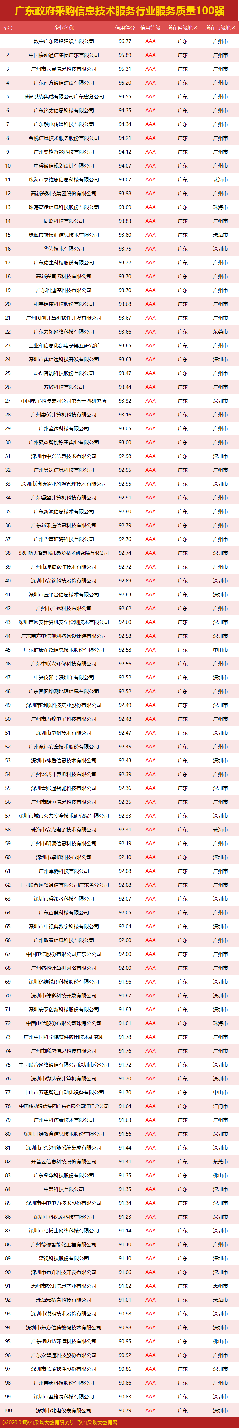 广东省政府采购服务质量行业百强榜单强势来袭,您企业上榜了吗?