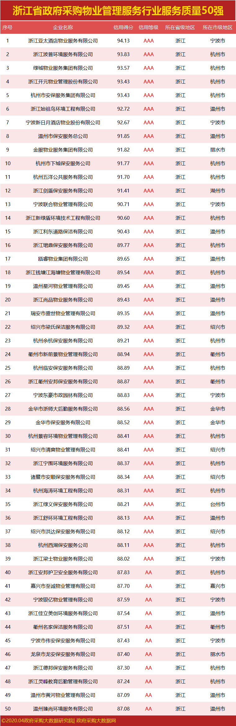 1.重磅公布!政府采购物业管理服务行业服务质量哪家强?