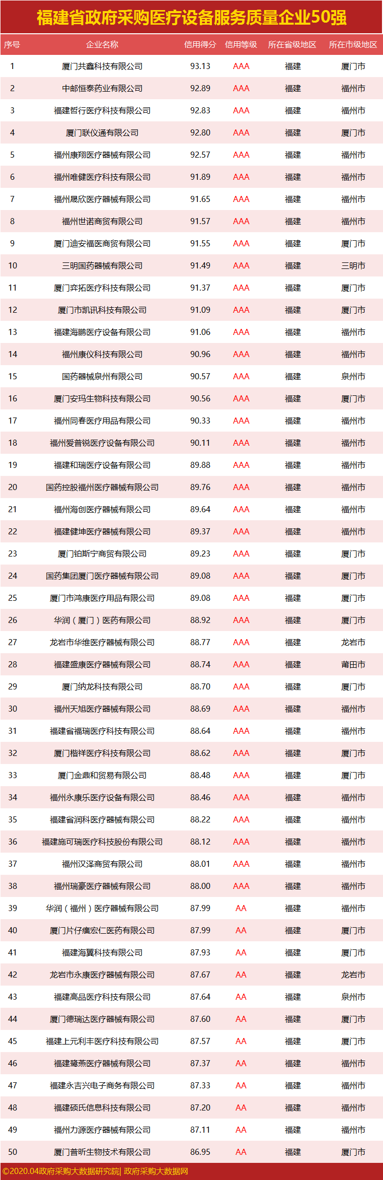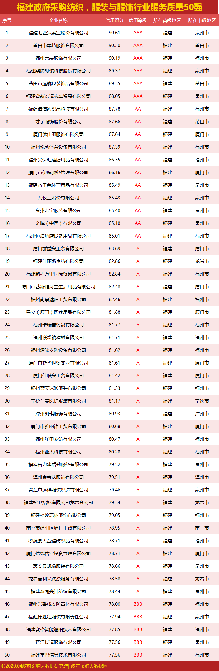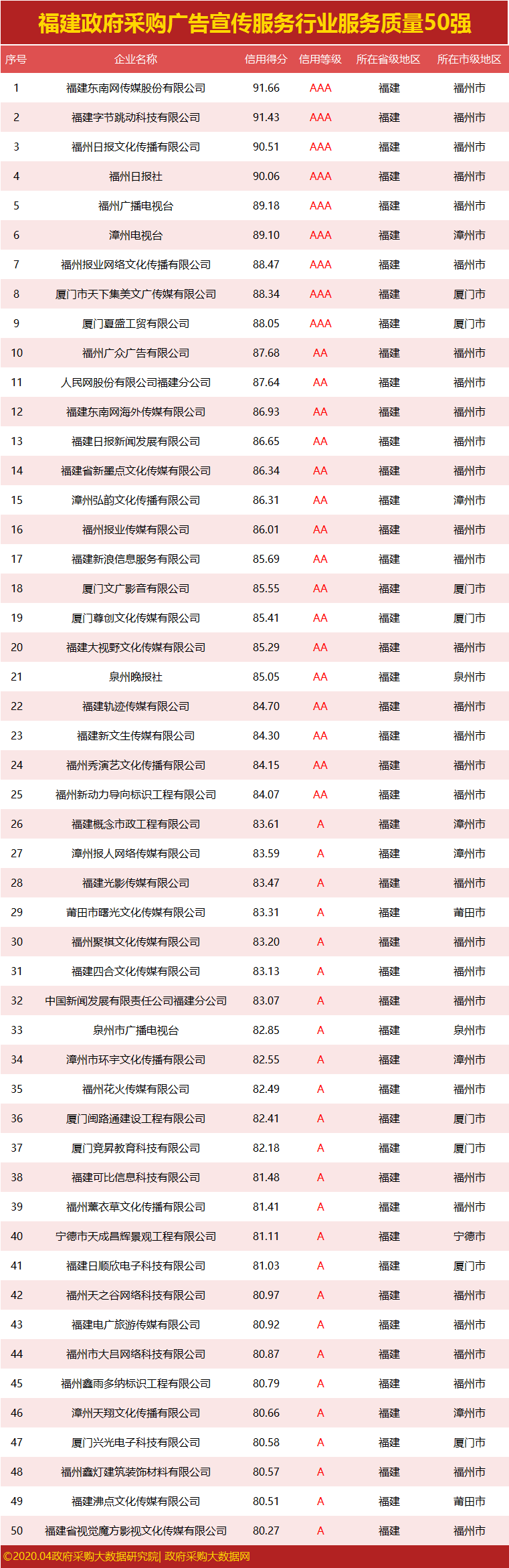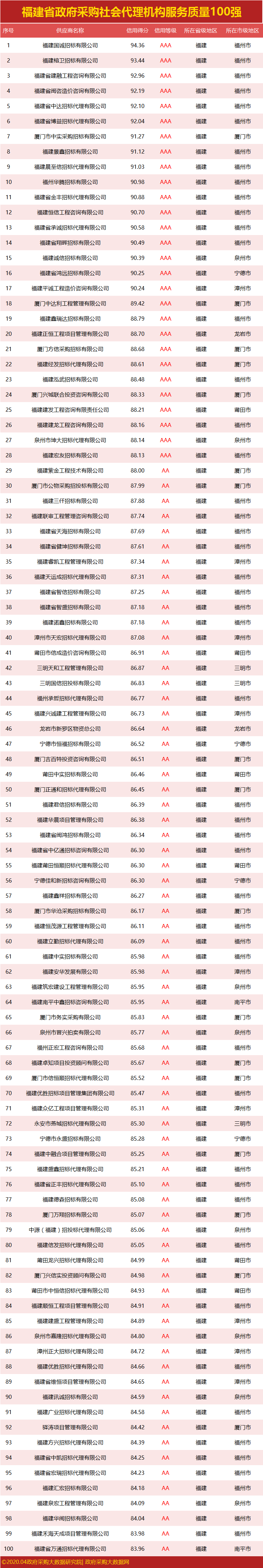福建省政府采购服务质量榜单强势来袭,谁勇夺行业第一?