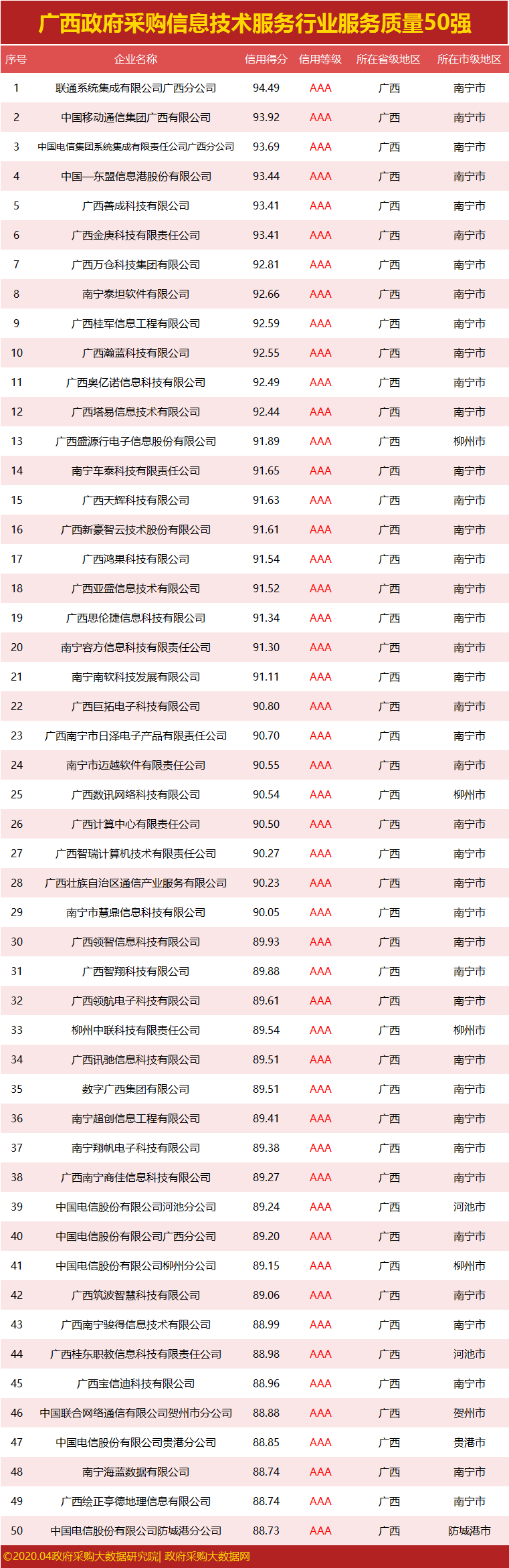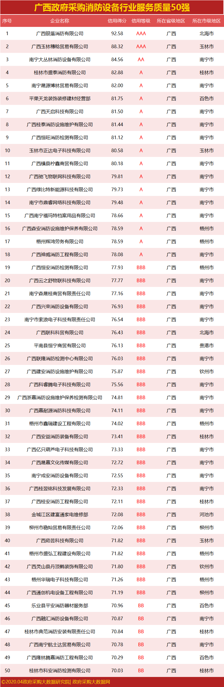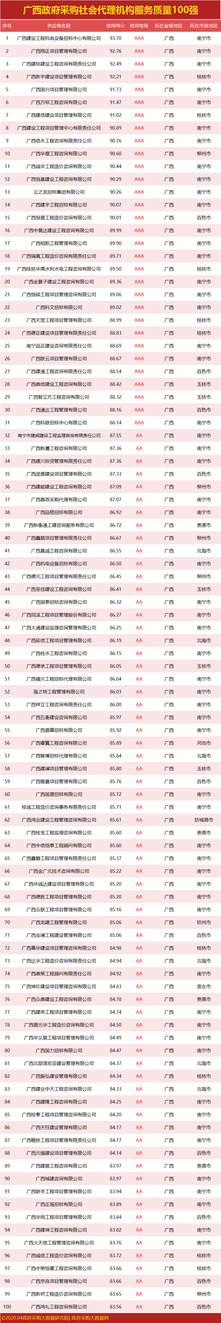 独家发布!广西政府采购行业服务质量榜单来袭,您企业上榜了吗?
