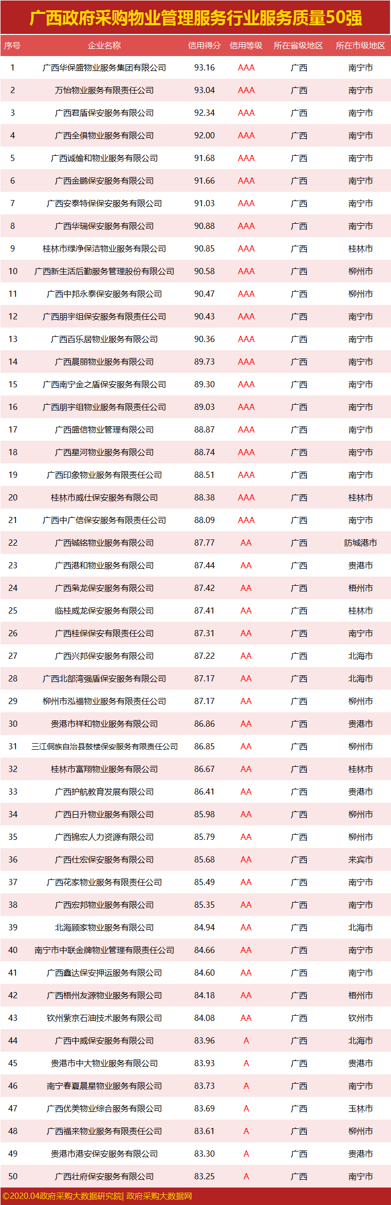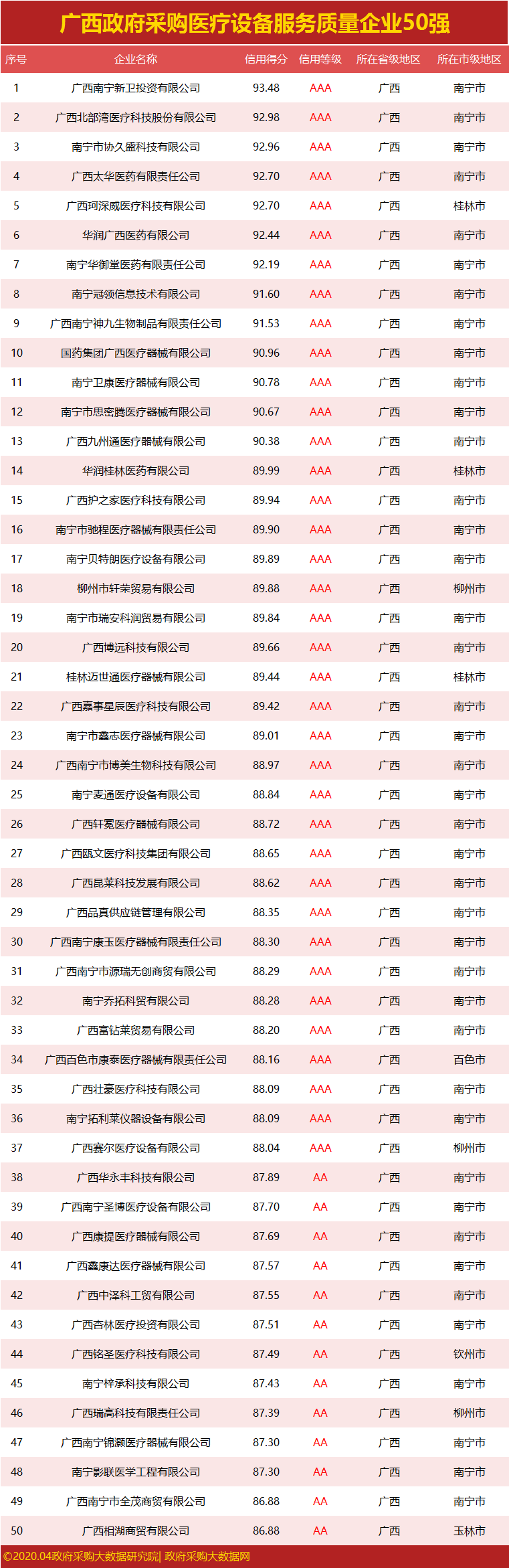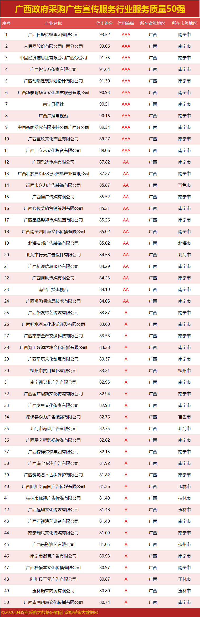 独家发布!广西政府采购行业服务质量榜单来袭,您企业上榜了吗?