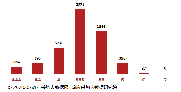 天津市政府采购企业服务质量大数据信用等级分布