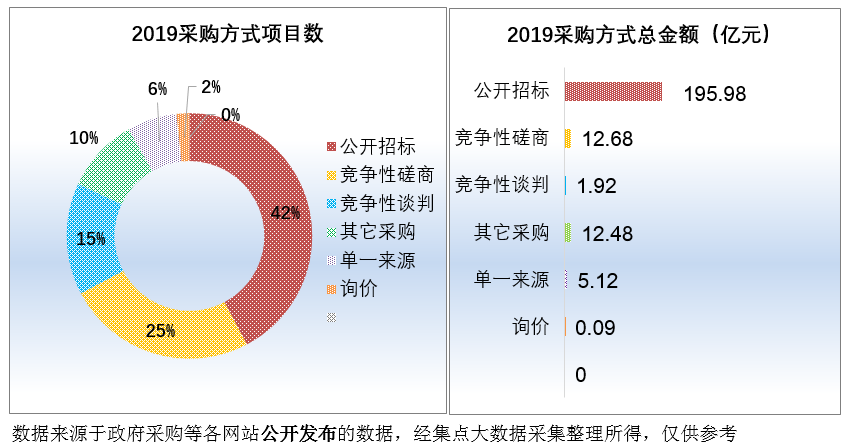 竞争性谈判采购项目数323个,占比项目总数的14.71%,项目金额1.92亿元,占比项目总金额的0.84%;