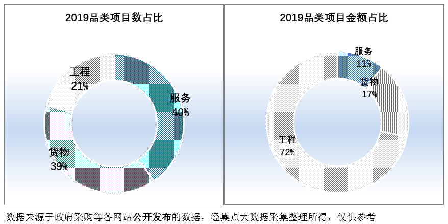 2019年度太原市服务类采购项目数868个,占比项目总数的40.35%,项目金额25.11亿元,占比项目总金额的10.82%;