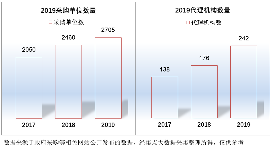 如需订阅2019年度政府采购全国、各省份以及各地级市年度完整版报告,欢迎联系我们。