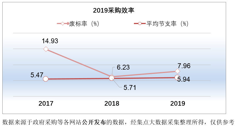 同时,数据显示,福州市平均节支率近三年来变化幅度不大,2019年平均节支率为5.95%。从数据来看2019年采购节支能力较2017年有所提升。