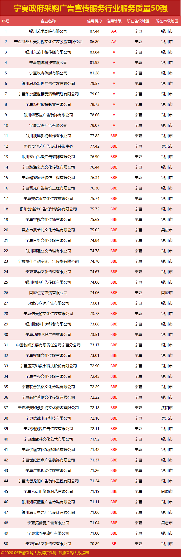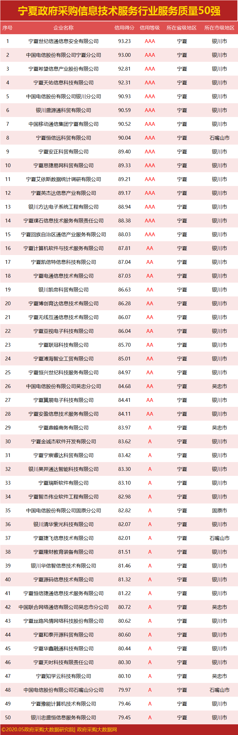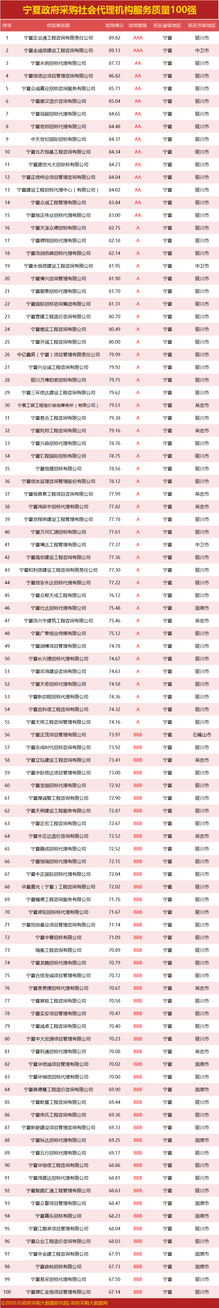 独家发布!宁夏政府采购代理机构服务质量100强&行业50强花落谁家?