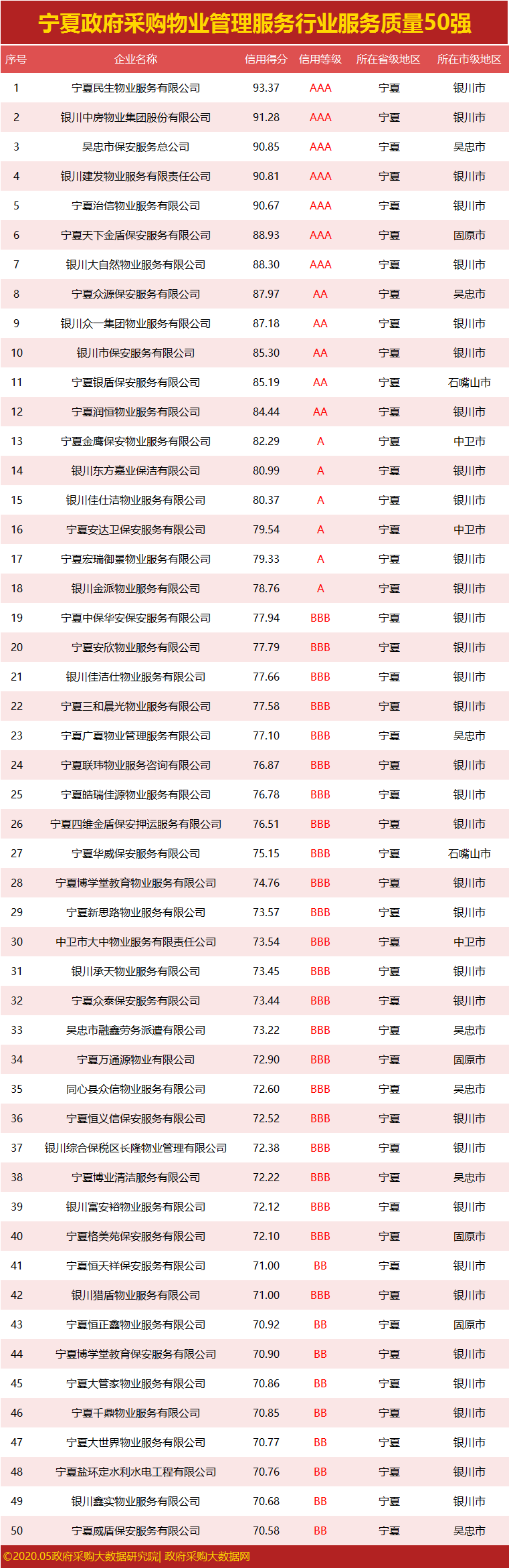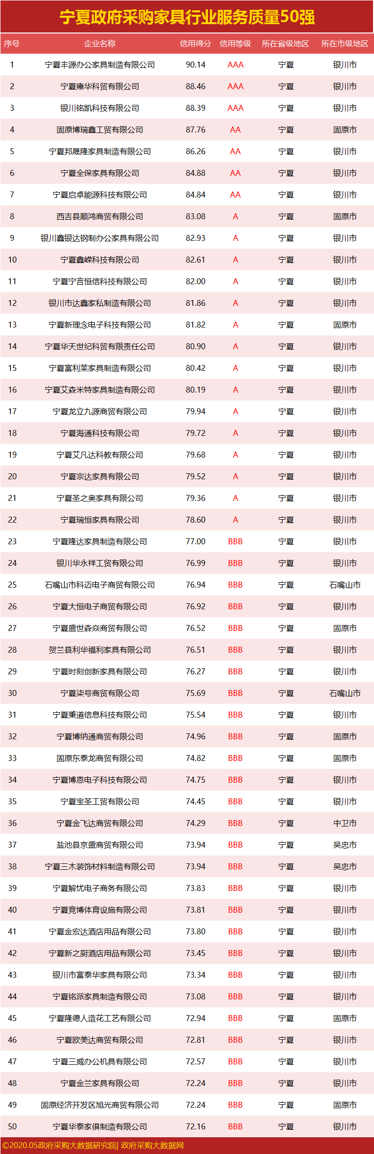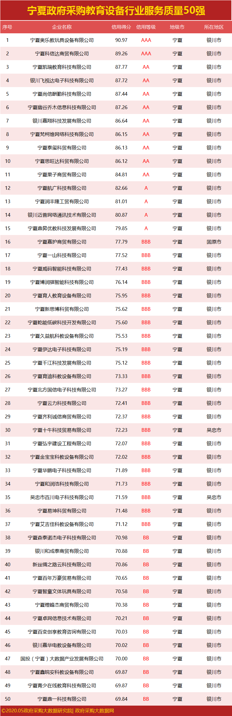 独家发布!宁夏政府采购代理机构服务质量100强&行业50强花落谁家?