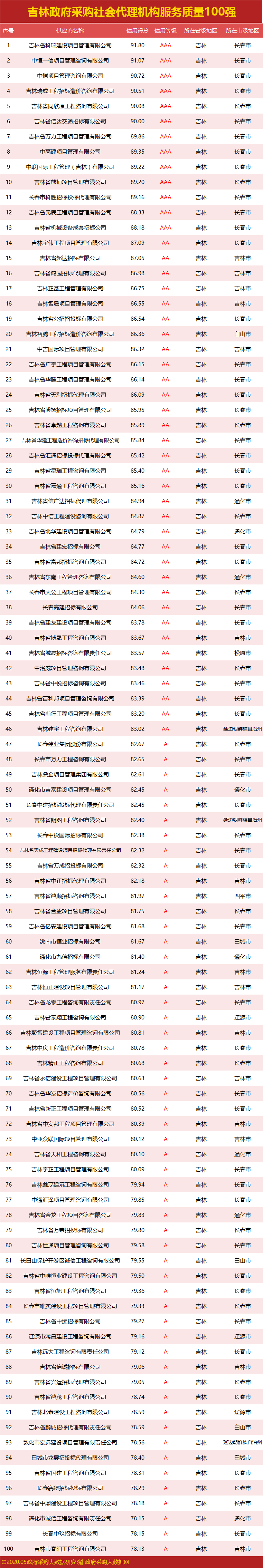独家发布!吉林政府采购代理机构服务质量100强&行业20强花落谁家?