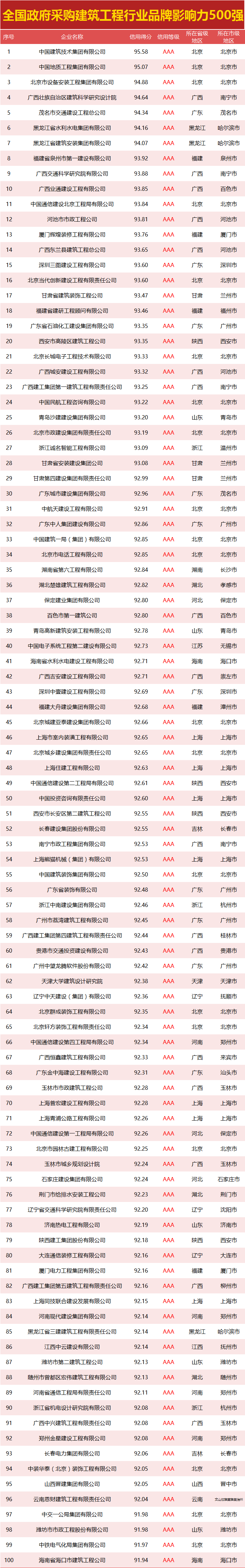 独家发布|全国政府采购建筑行业品牌影响力TOP500强势来袭,谁勇夺第一?