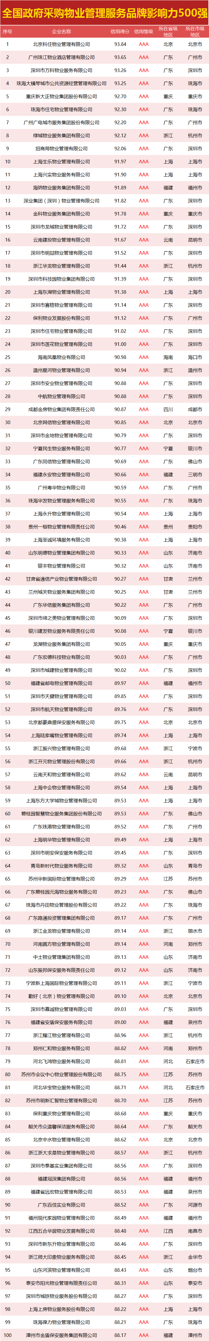 独家发布|全国政府采购物业管理品牌影响力500强花落谁家?