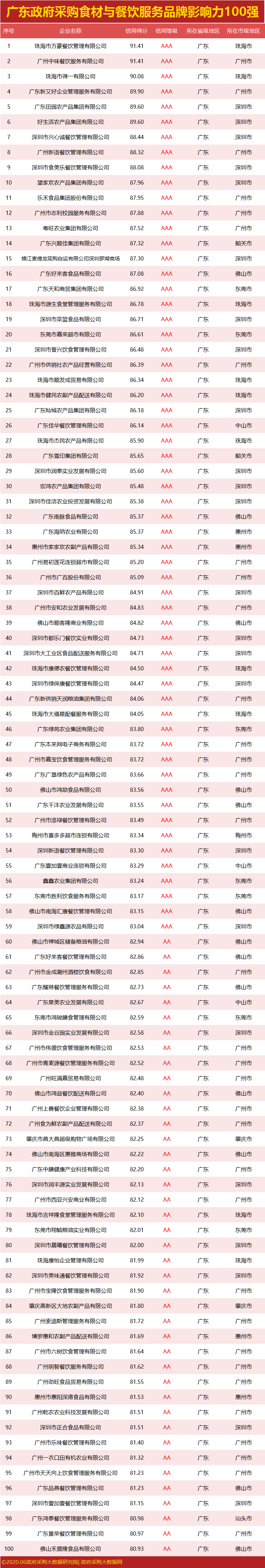 独家|广东政府采购代理机构&物业&食材餐饮服务品牌影响力100强花落谁家?