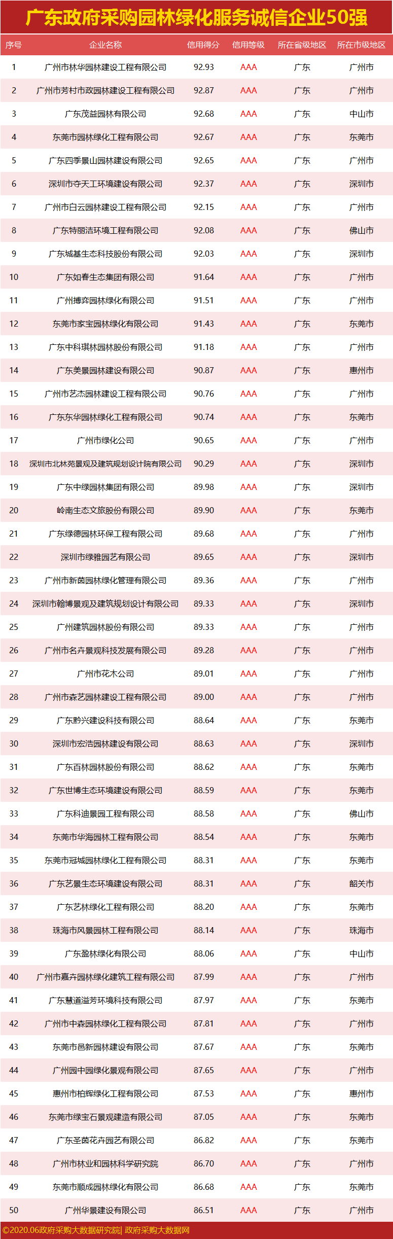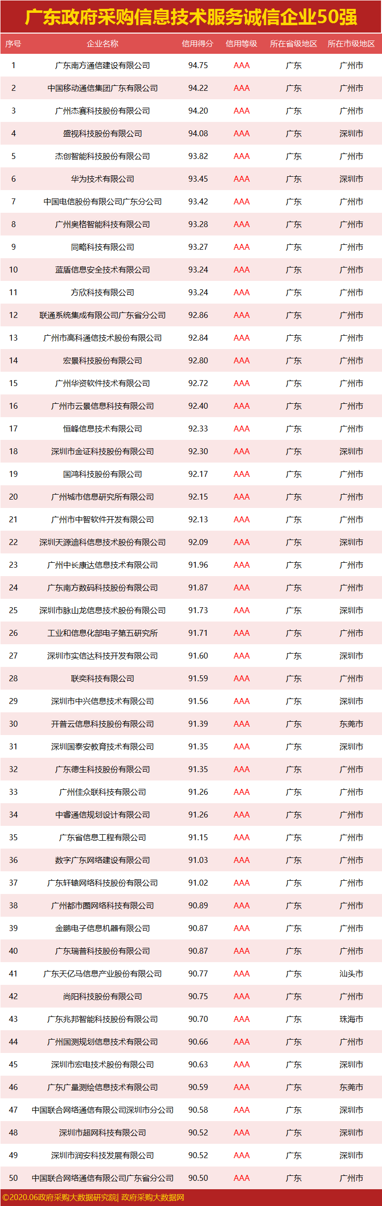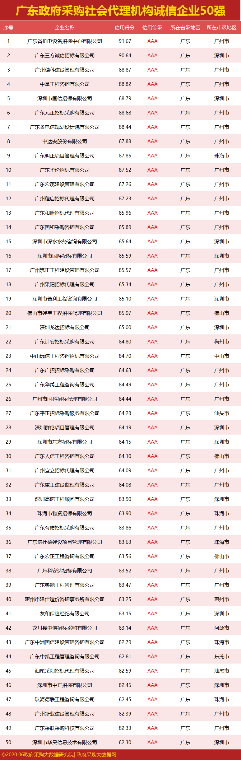 独家发布|广东政府采购行业诚信企业50强来袭,您企业上榜了吗?