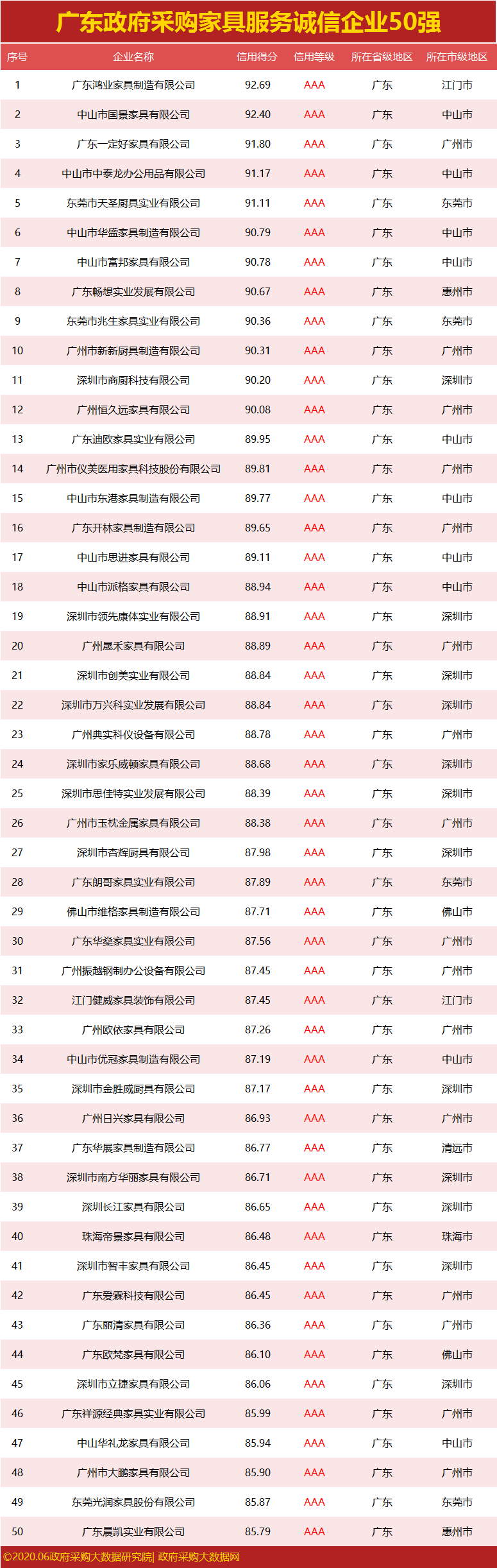 广东省政府采购诚信企业榜单本着“大数据、客观独立、可持续”的原则: