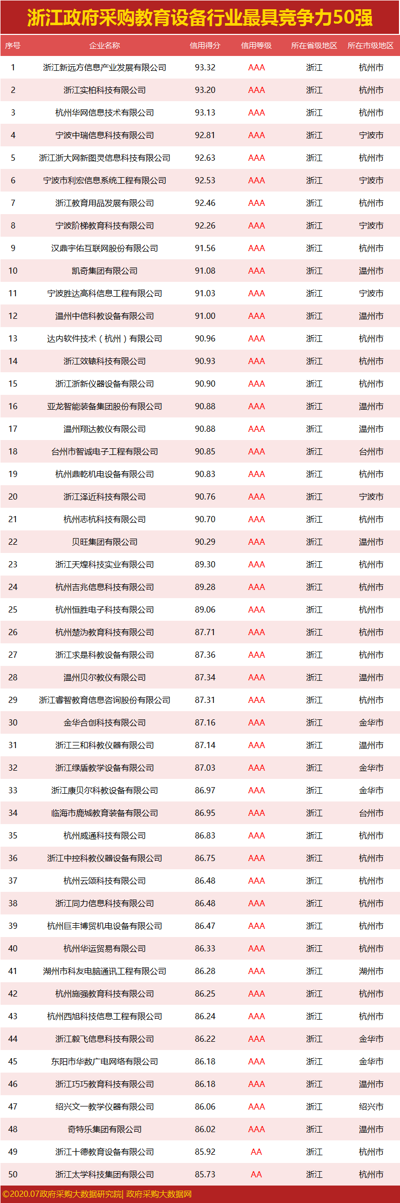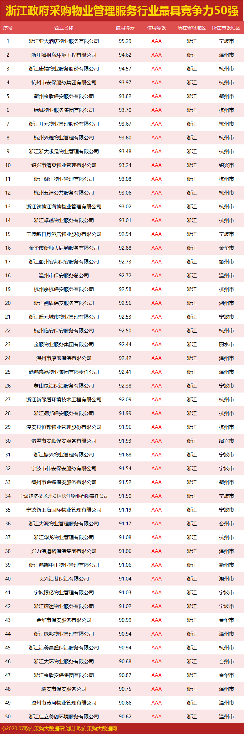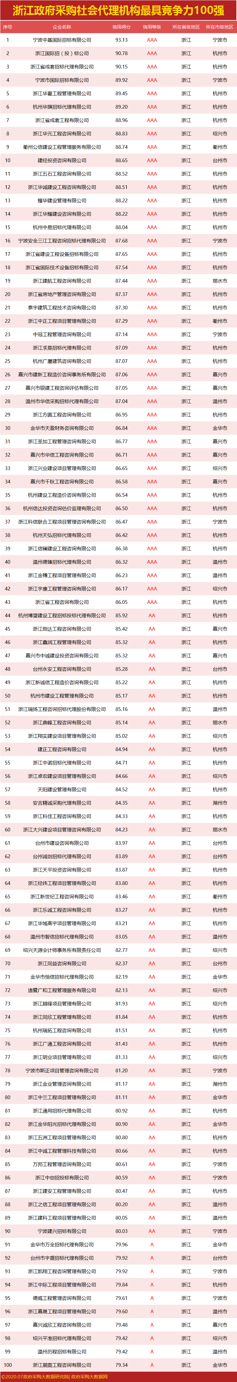 政府采购大数据研究院和政府采购大数据网联合发布:浙江省政府采购社会代理机构竞争力100强&行业竞争力50强。数据评估区间:2019年07月01日至2020年6月30日。公示时间:2020年07月30日至2020年08月05日。