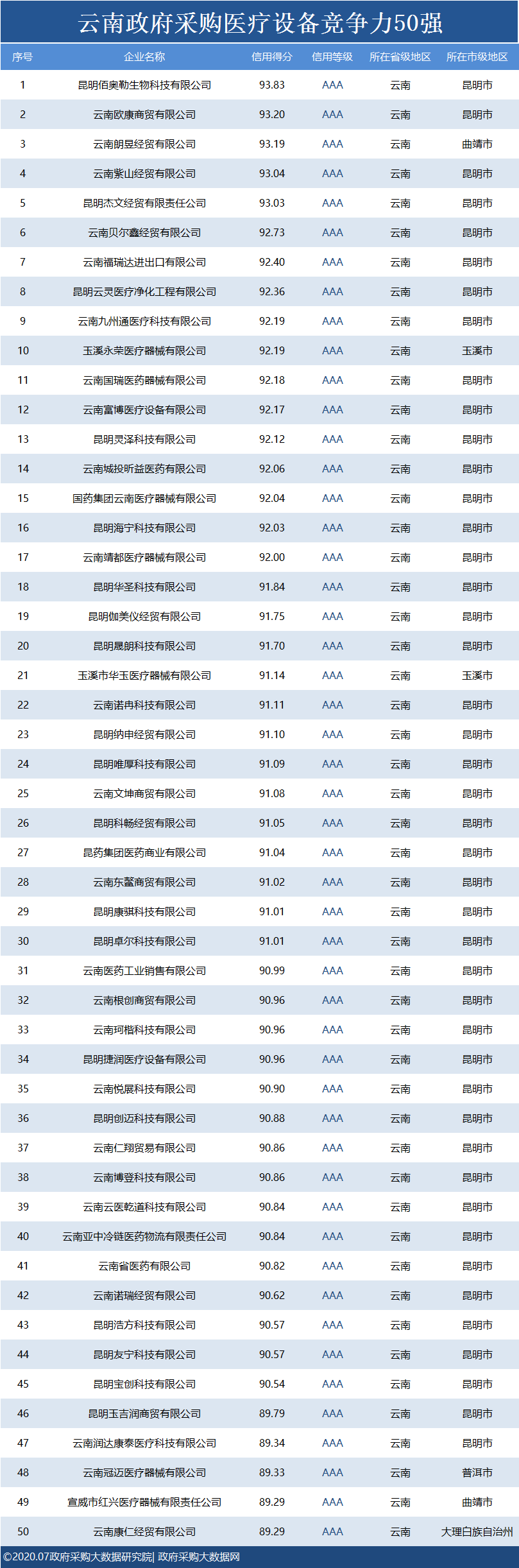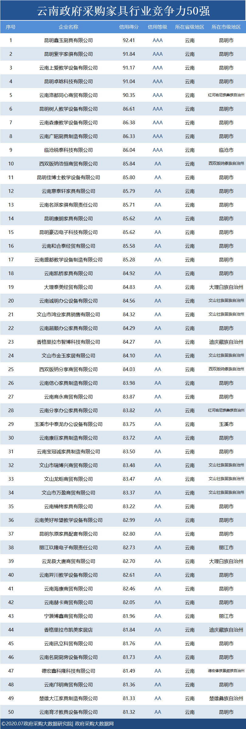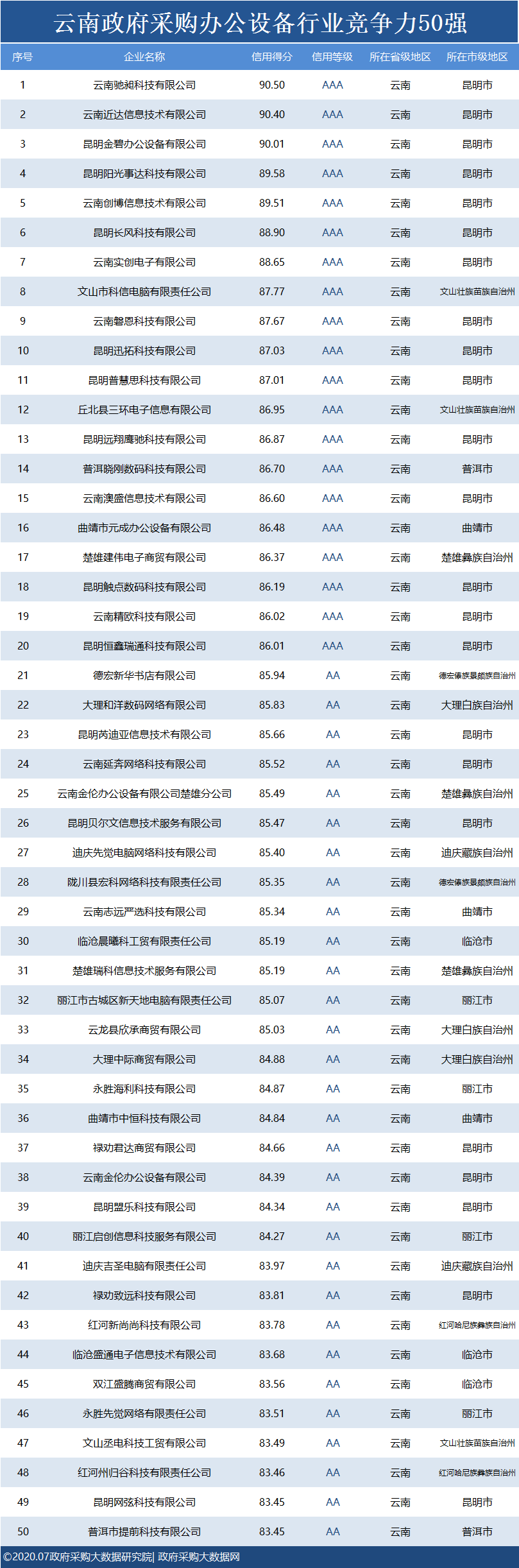 独家发布|云南政府采购最具竞争力50强花落谁家?