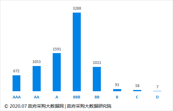 云南省政府采购企业竞争力大数据信用等级分布