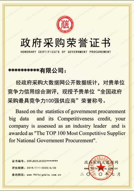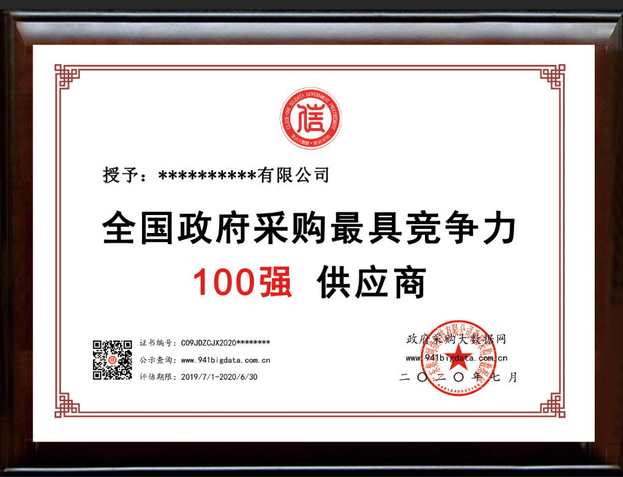 政府采购大数据网可为上榜企业出具荣誉证书(包含信用报告&证书&牌匾)。解释权归政府采购大数据研究院所有。