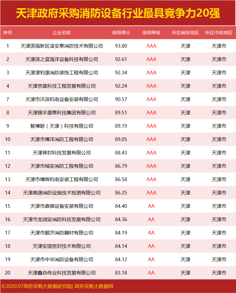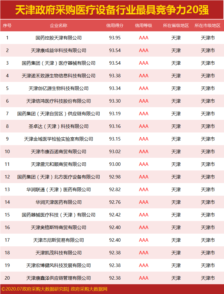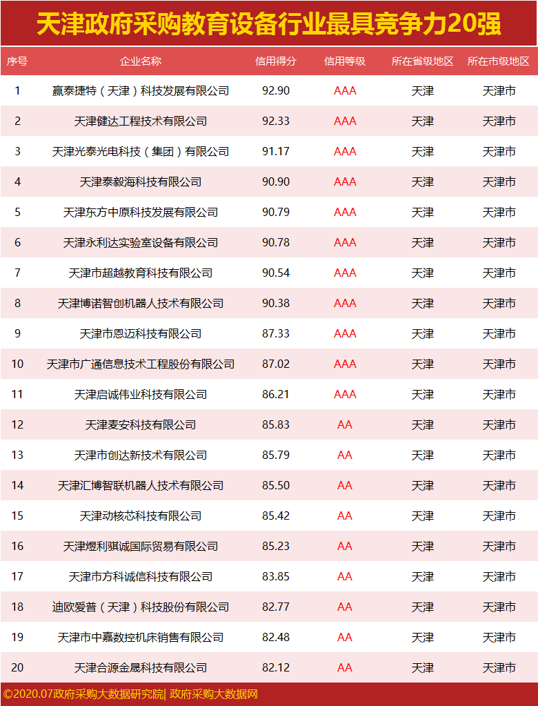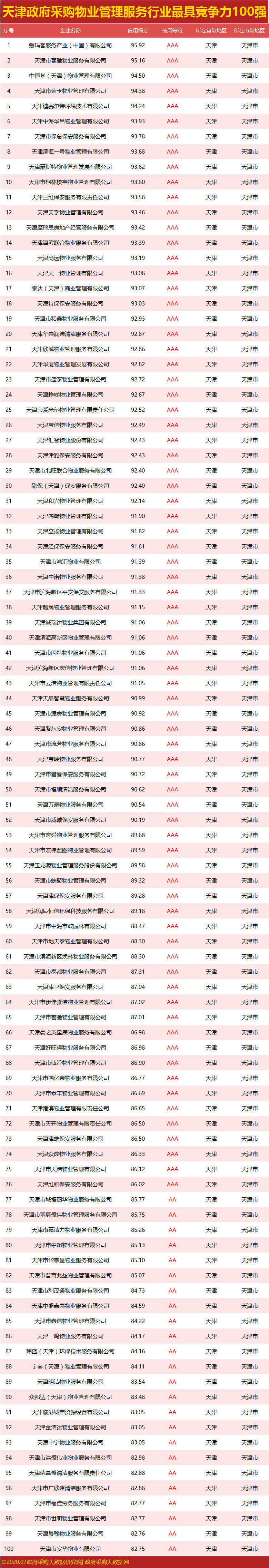 独家发布|天津市政府采购行业竞争力100强企业花落谁家?