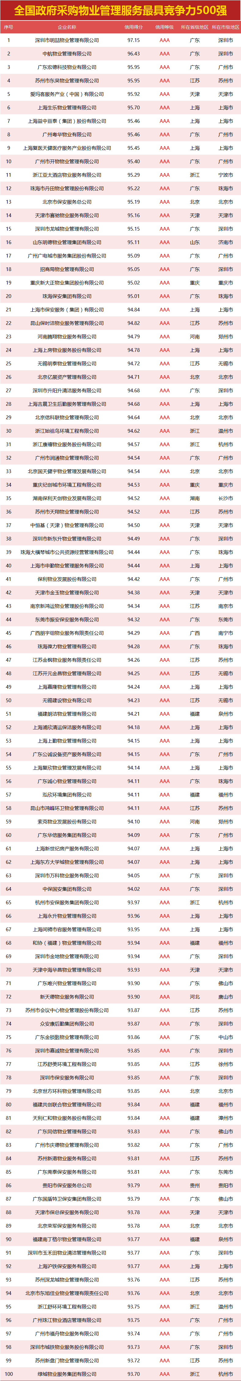 独家|全国政府采购物业最具竞争力500强企业花落谁家?
