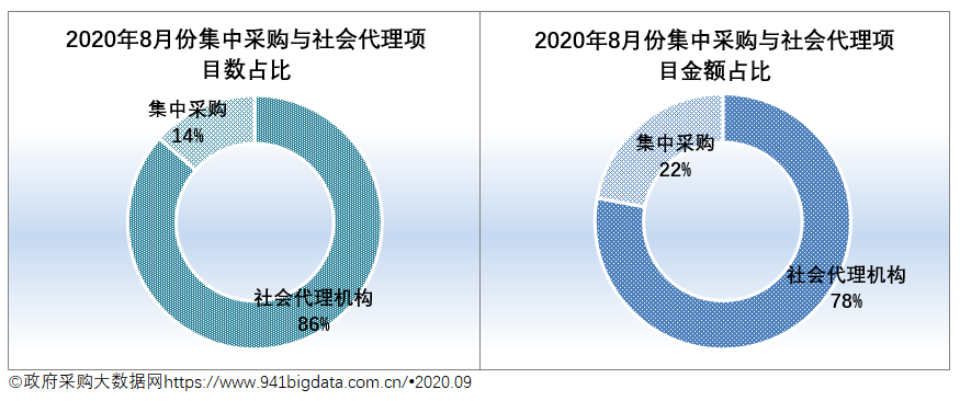 2020年8月份广东社会代理机构855家,占广东省政府采购代理机构数的93.14%,代理项目数7514个,占项目总数的86.48%,代理项目金额184.07亿元,占项目总规模的77.95%。