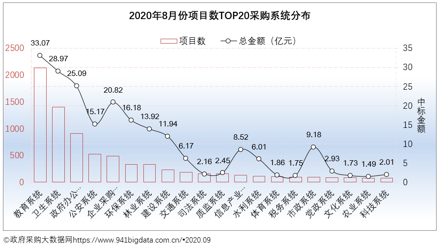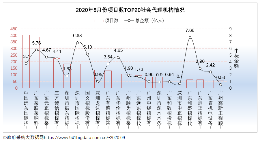 从项目数TOP20采购系统来看,2020年8月份广东省政府采购前三采购系统分别是: