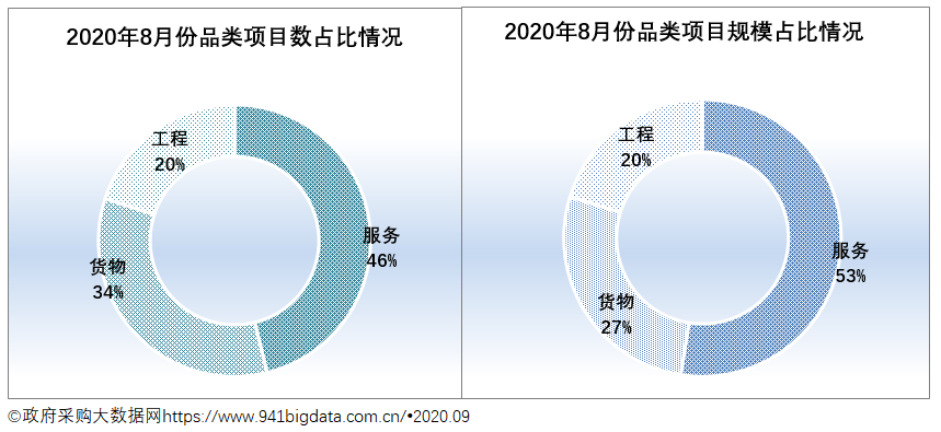 从项目采购结构来看,2020年8月份广东政府采购服务类项目占主导。具体来看: