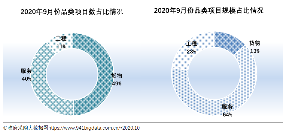 从项目采购结构来看,2020年9月份福建政府采购服务类采购规模占主导。具体来看: