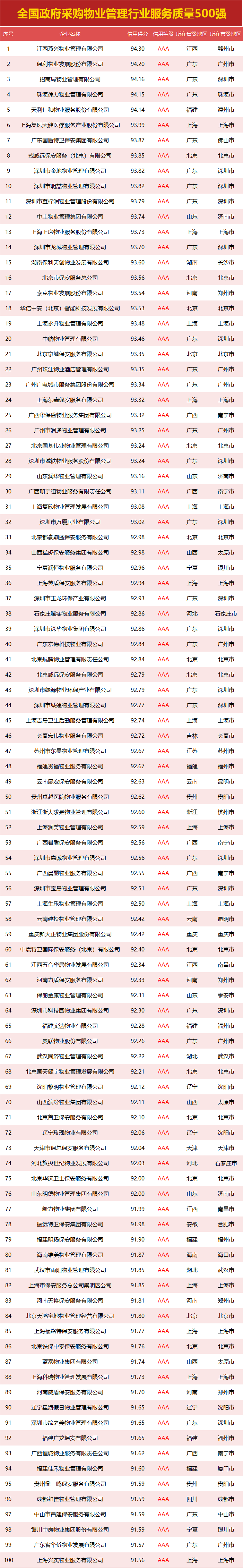 独家发布|全国政府采购物业管理服务质量500强花落谁家?