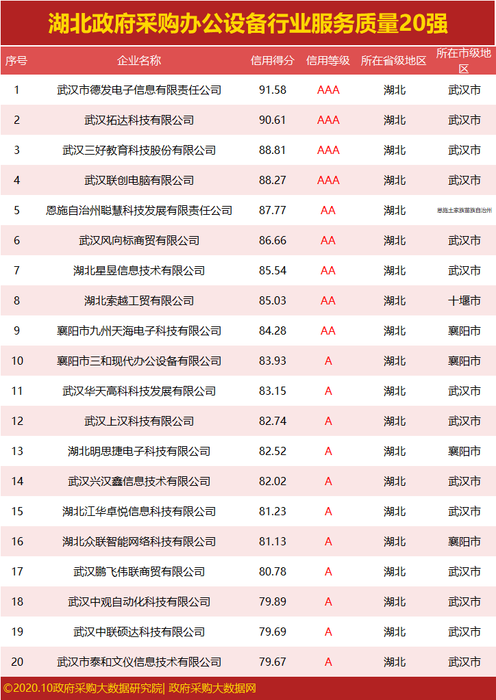 独家|湖北政府采购服务质量榜单强势来袭,您企业上榜了吗?