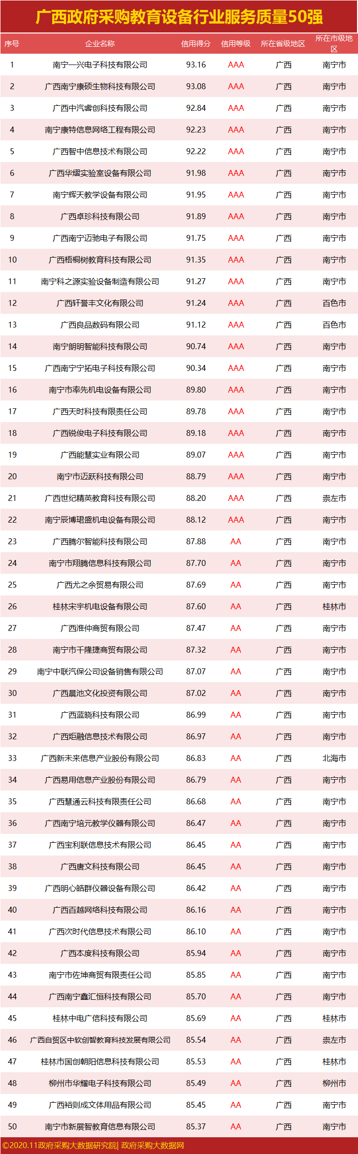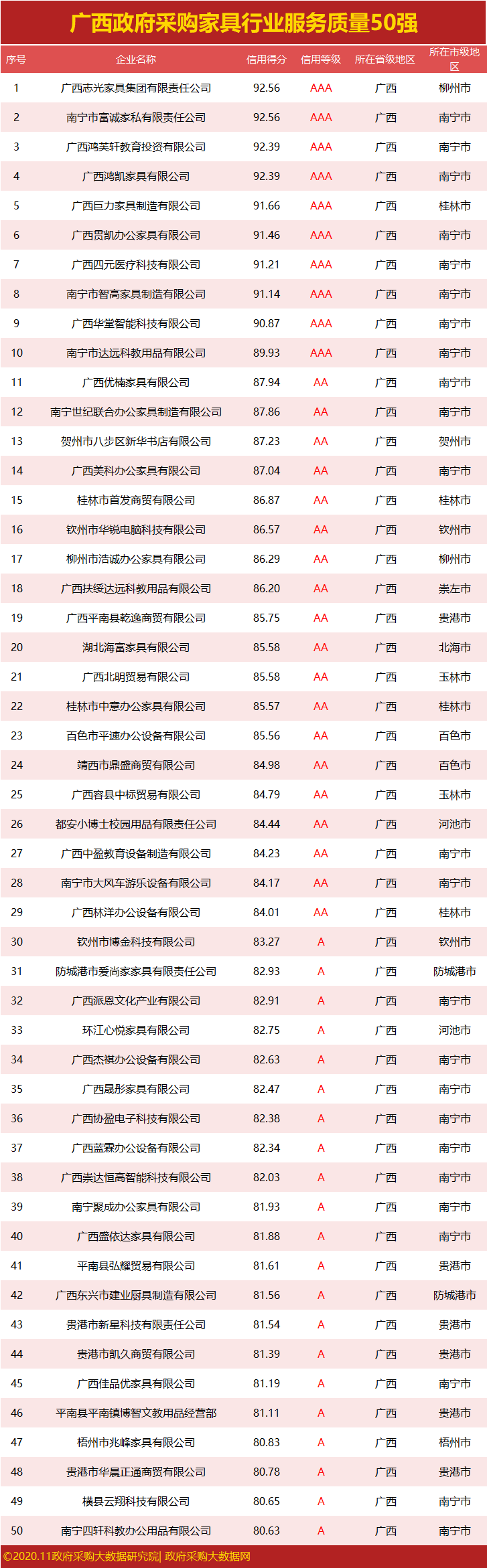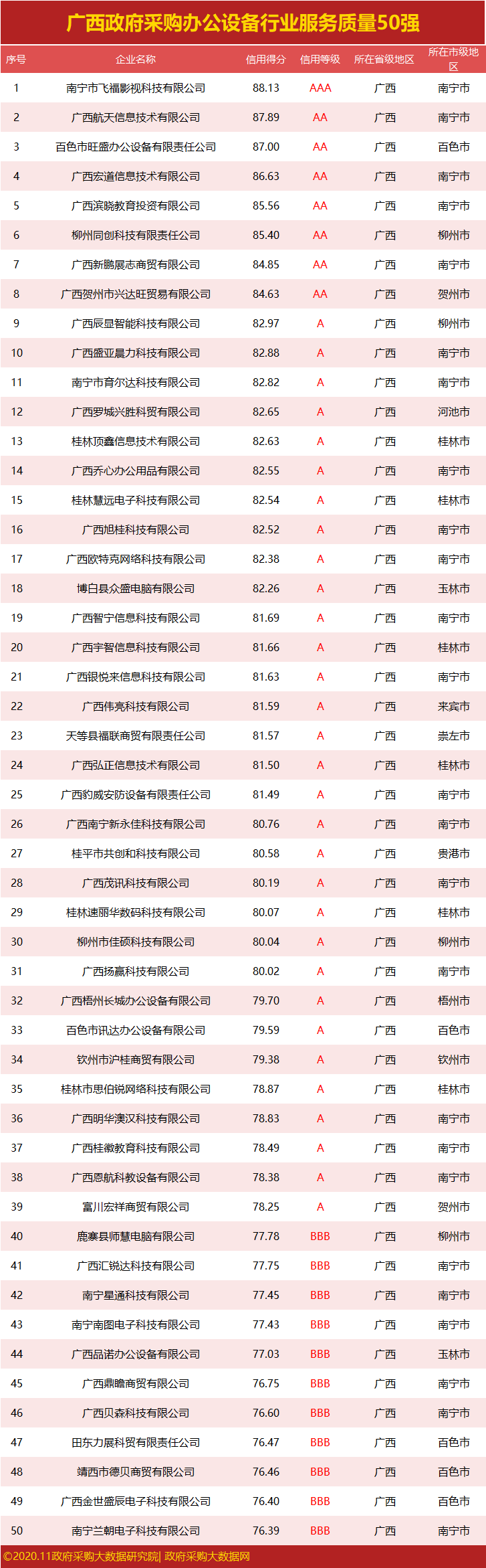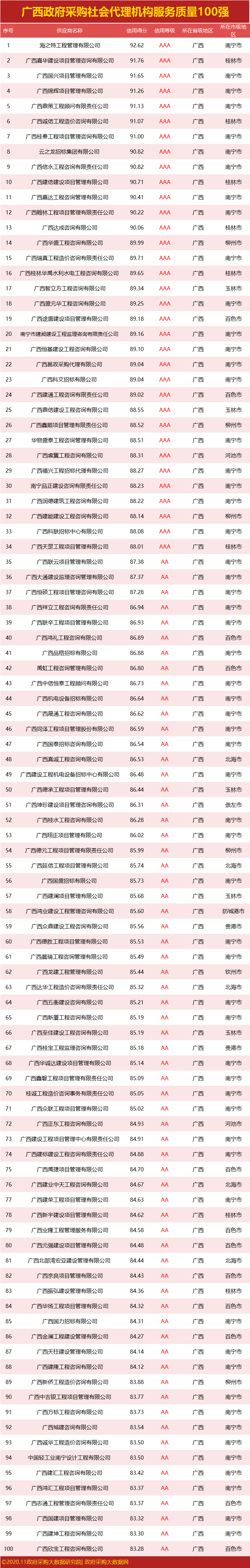 独家|广西政府采服务质量榜单来袭,谁勇夺行业第一?