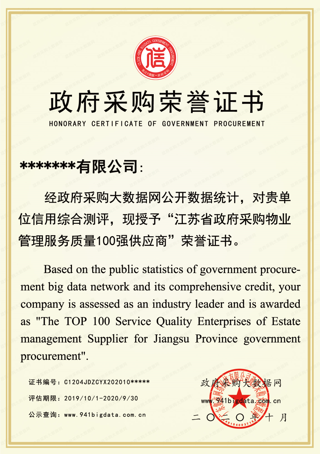 政府采购大数据网可出具荣誉证书(包含信用报告&证书&牌匾)。解释权归政府采购大数据研究院所有。