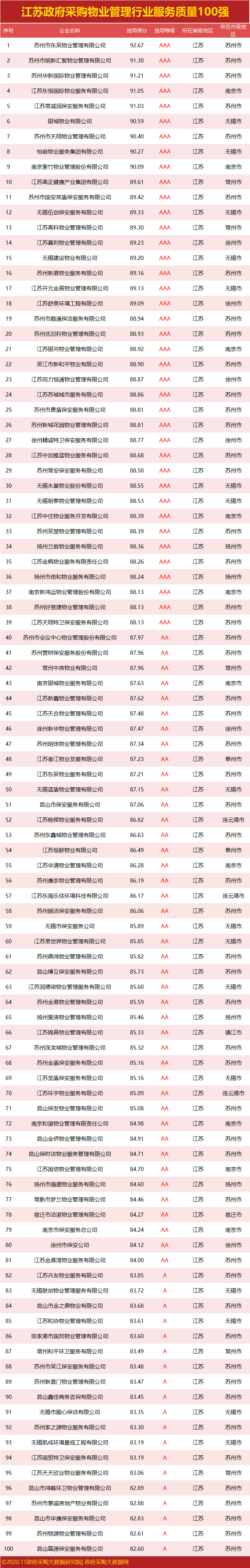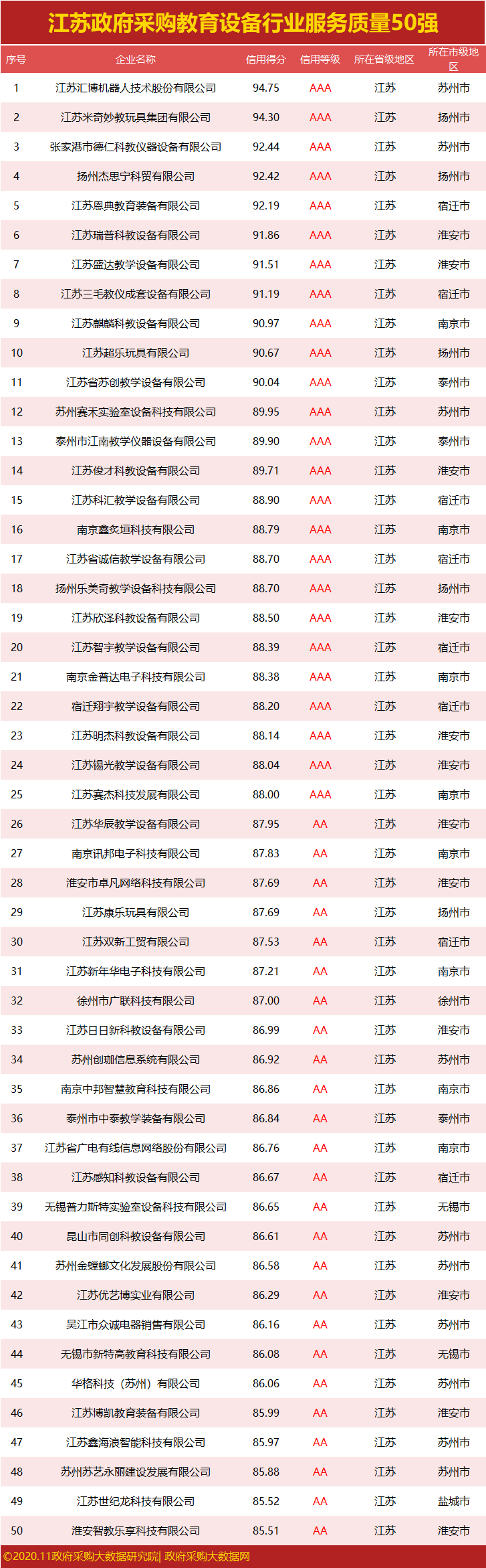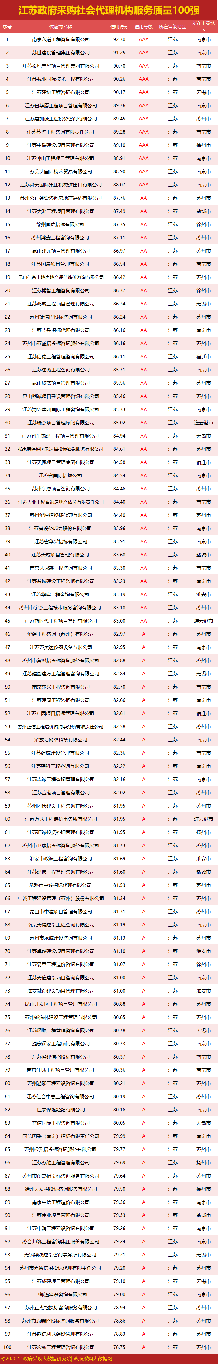 独家|江苏政府采购服务质量榜单出炉,您企业上榜了吗?