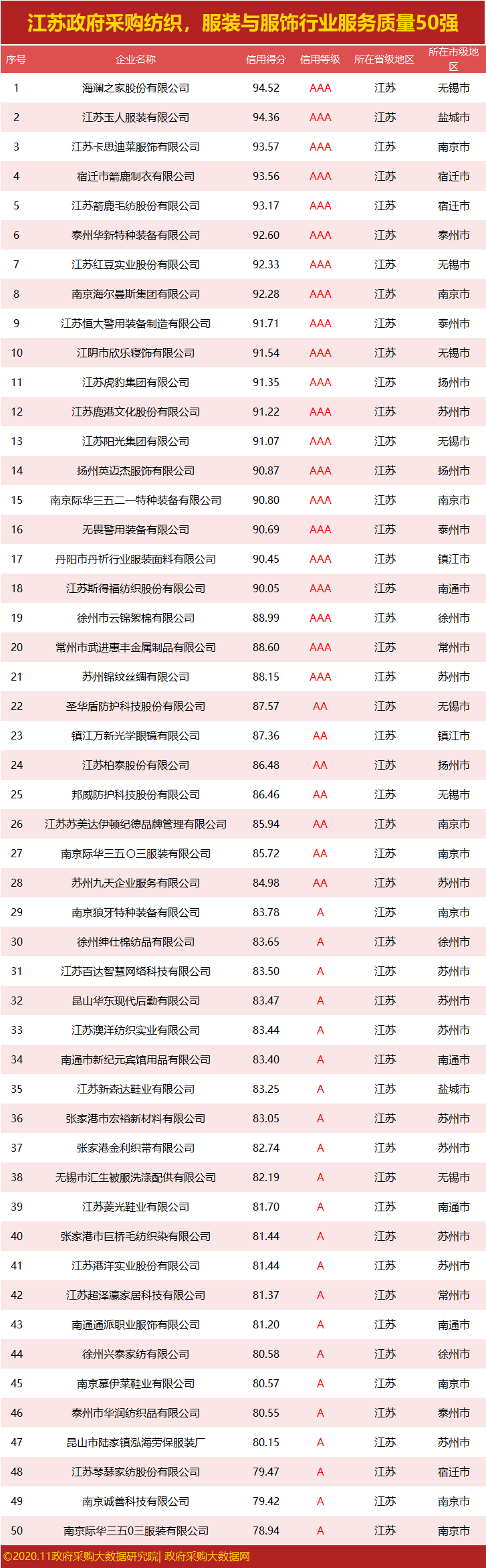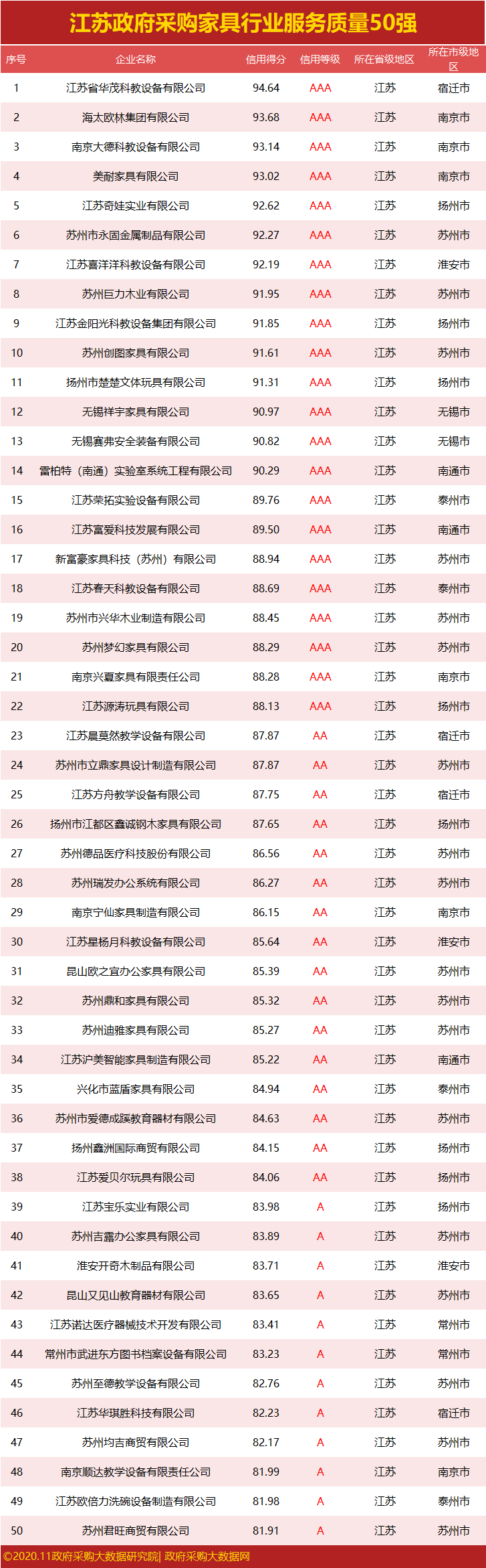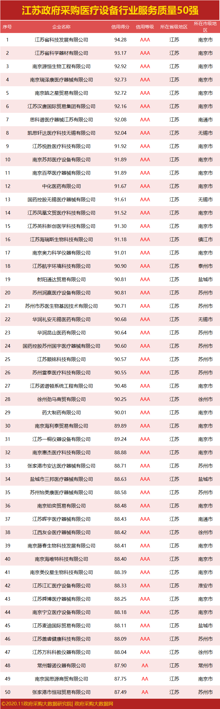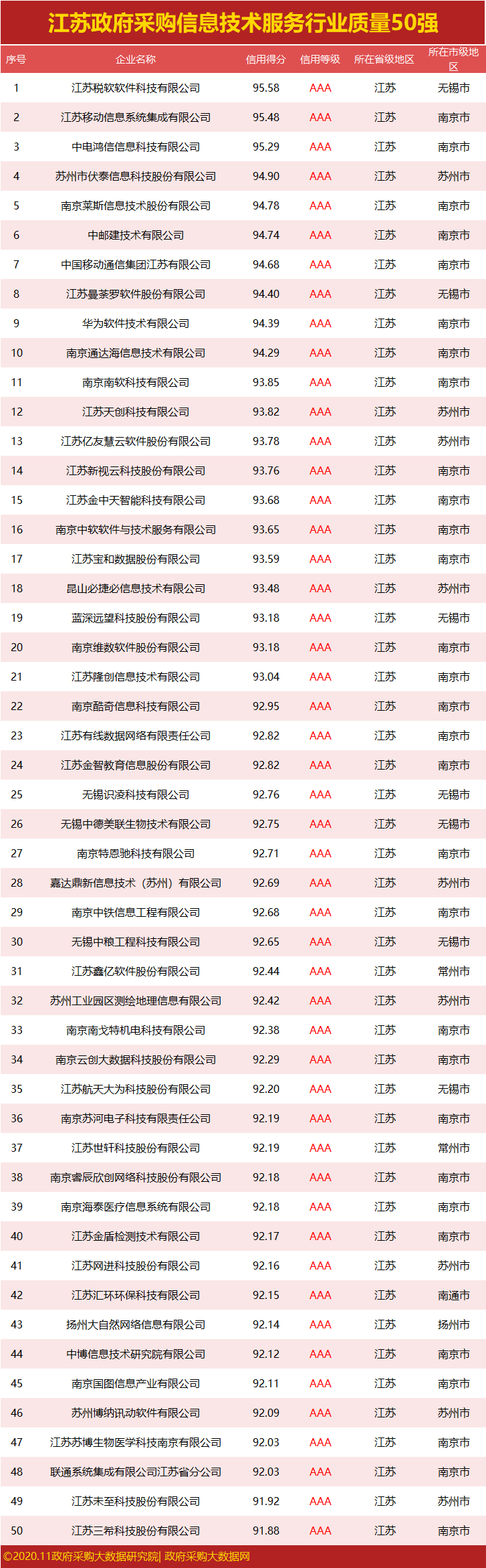 独家|江苏政府采购服务质量榜单出炉,您企业上榜了吗?