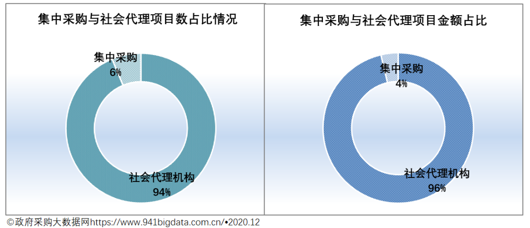 从代理机构性质来看,2020年11月份广西政府采购社会代理机构485家,占比94.17%;代理项目数5210个,占项目总数的93.72%,代理项目金额309.54亿元,占项目总规模的96.29%。