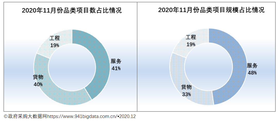 从项目采购结构来看,2020年11月份广东政府采购服务类项目占主导地位。具体来看: