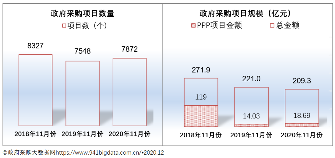 政府采购大数据|11月广东政府采购规模209亿元,同比下降5.32%