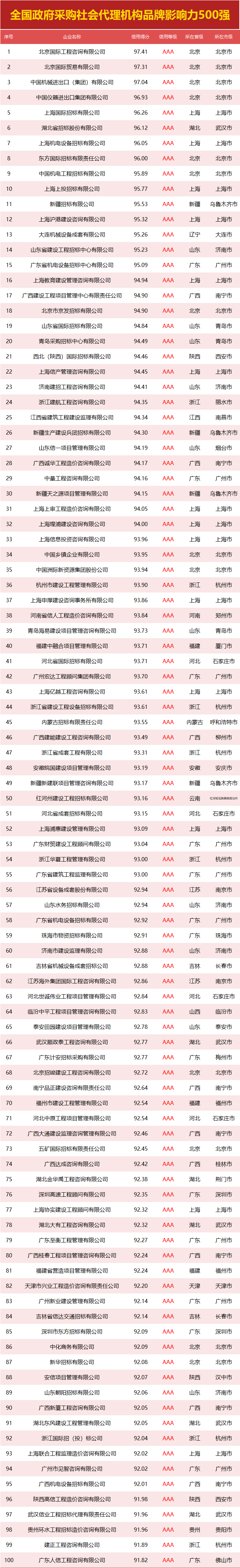 那么,本期都有哪些企业上榜全国500强呢?一起来揭晓全国政府采购社会代理机构品牌影响力500强花落谁家。
