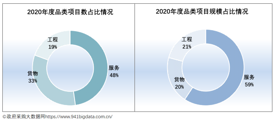 从项目采购结构来看,2020年广东政府采购服务类采购规模占主导。具体来看: