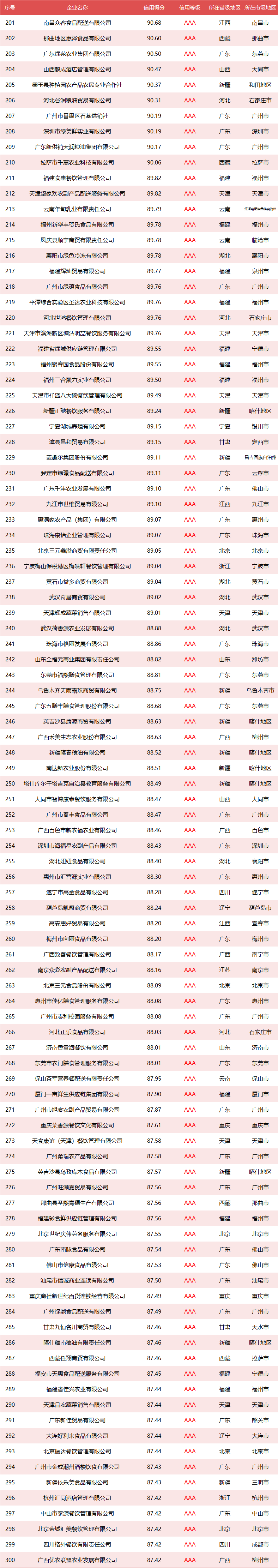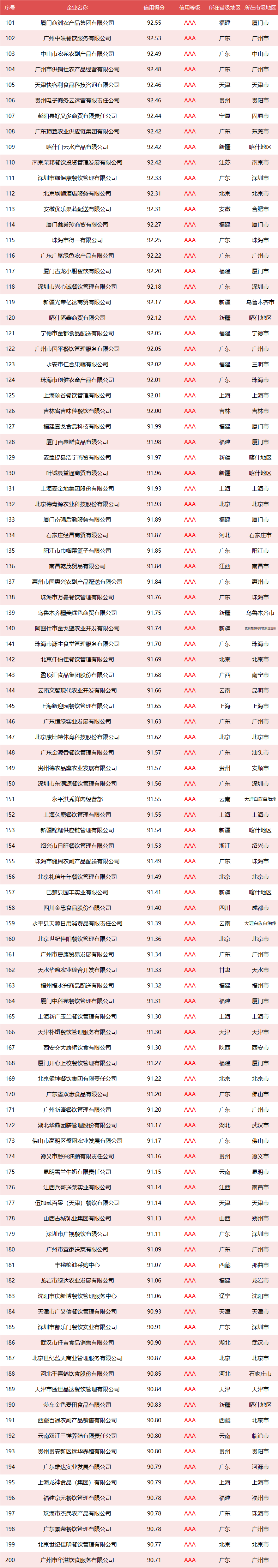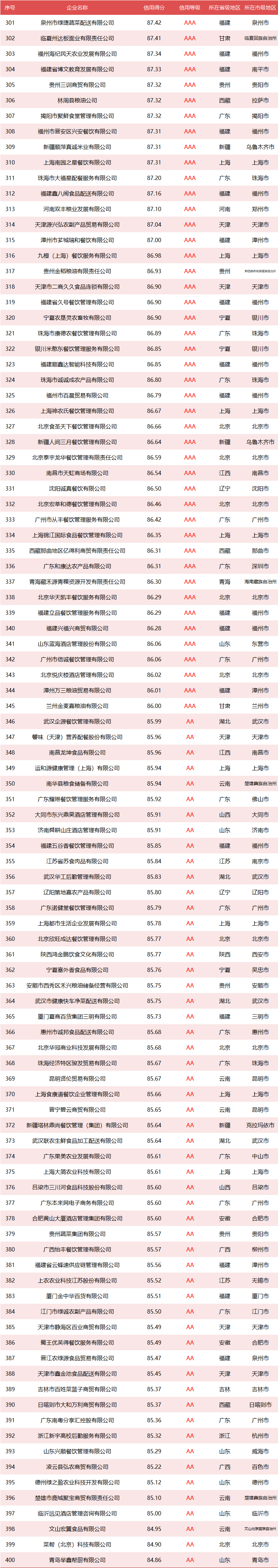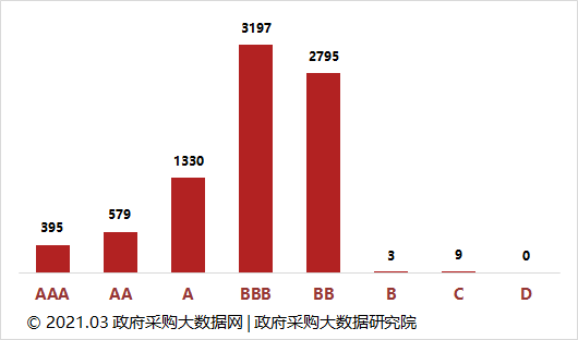 全国政府采购食材餐饮企业竞争力大数据信用等级分布