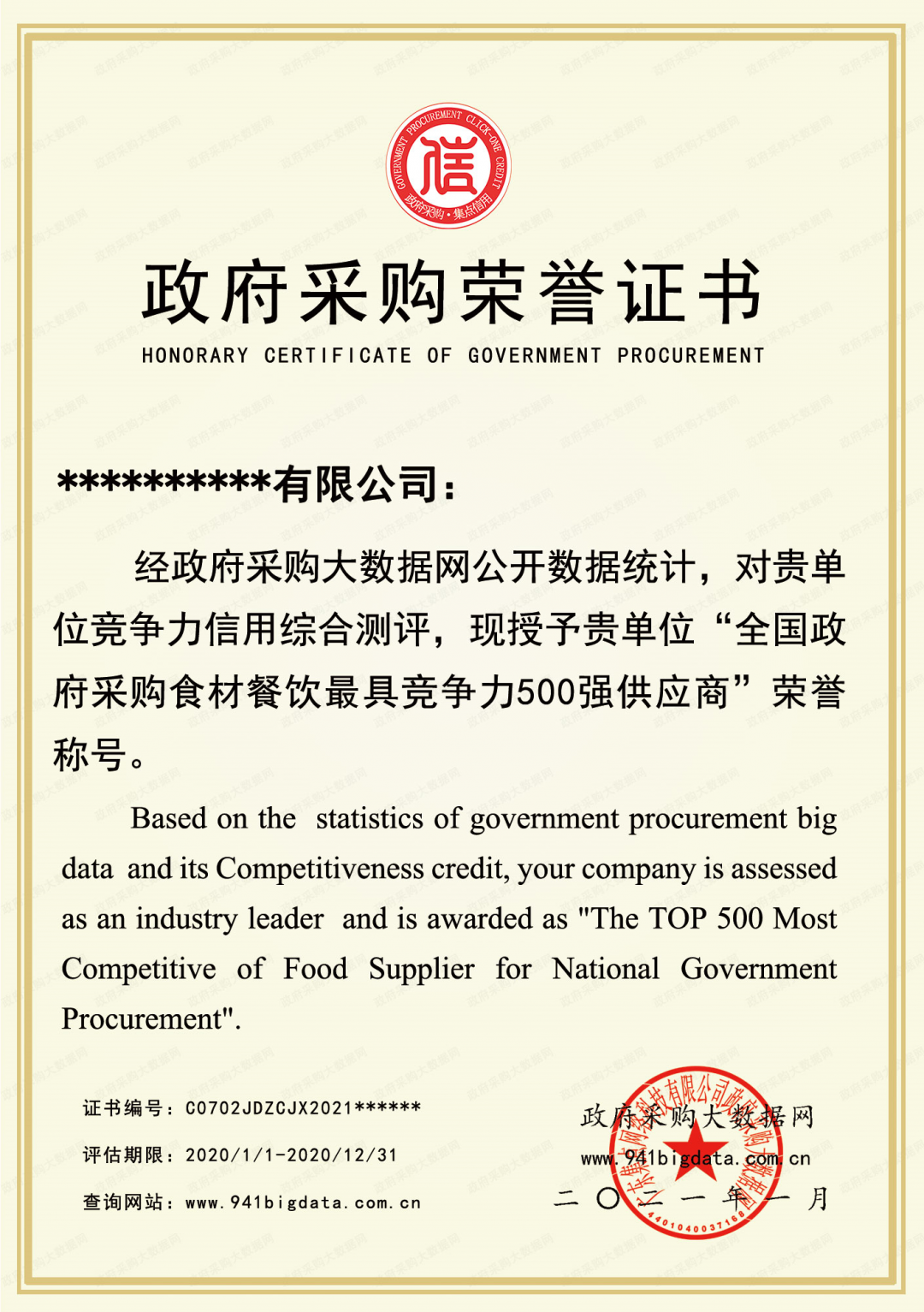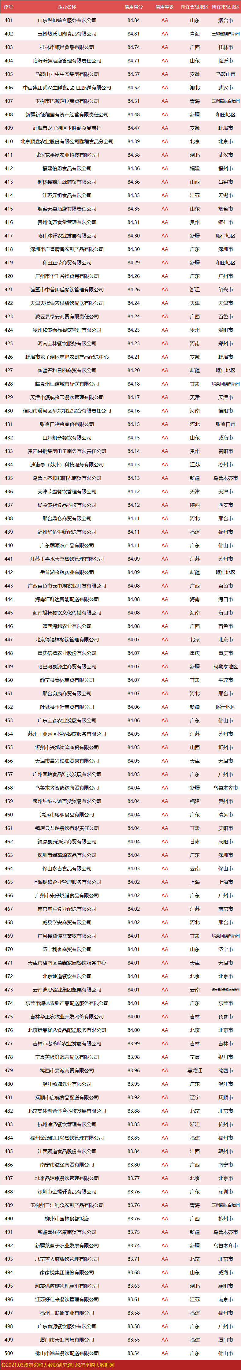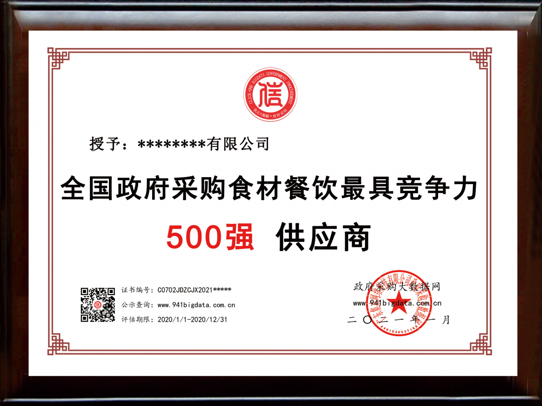 政府采购大数据研究院和政府采购大数据网联合发布:全国政府采购食材餐饮服务最具竞争力500强。数据评估区间:2020年01月01日至2020年12月31日。