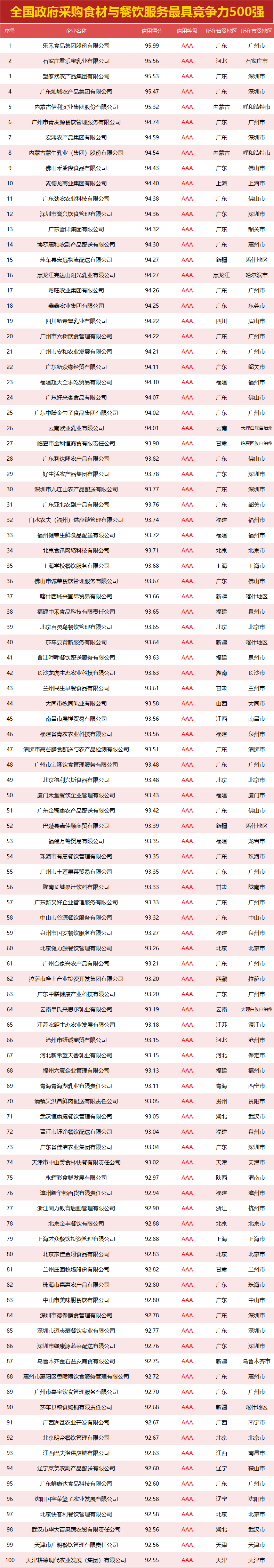 独家发布|全国政府采购食材餐饮最具竞争力500强,谁拿下第一?