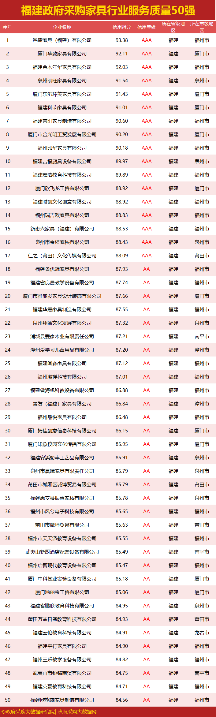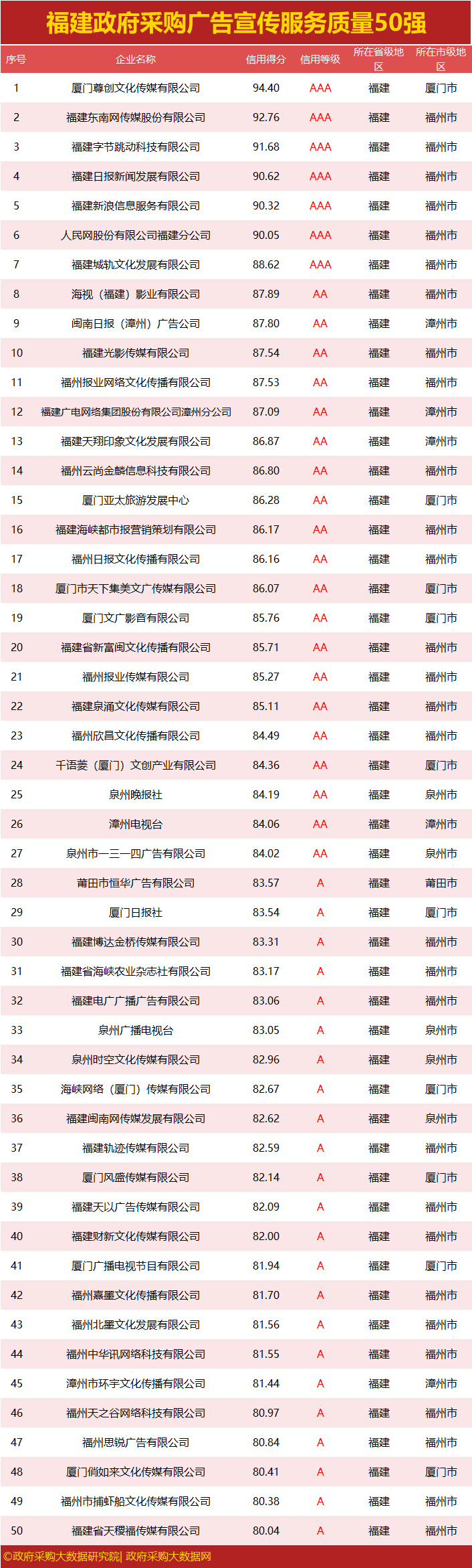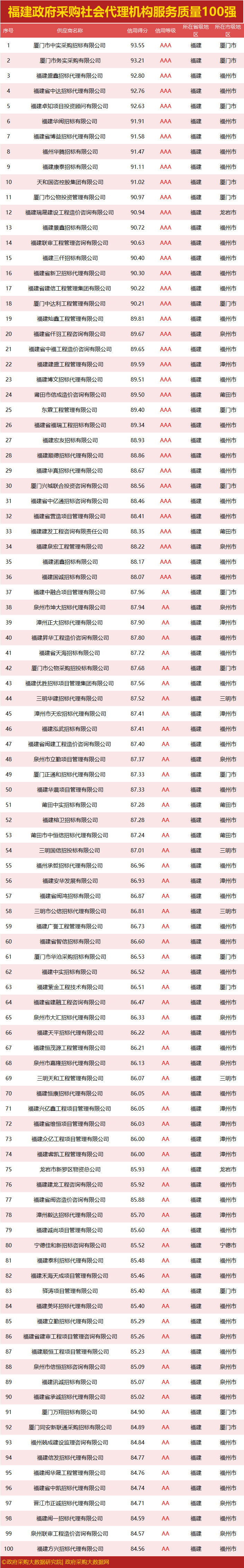 独家|福建政府采购服务质量榜单出炉,您企业上榜了吗?