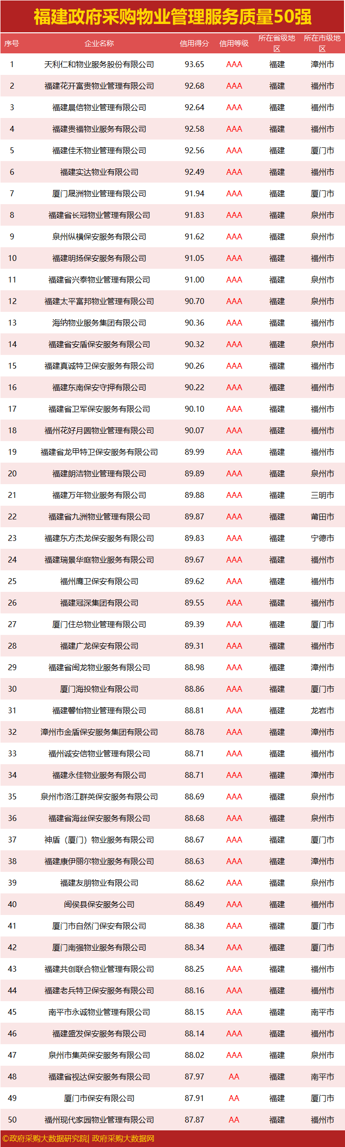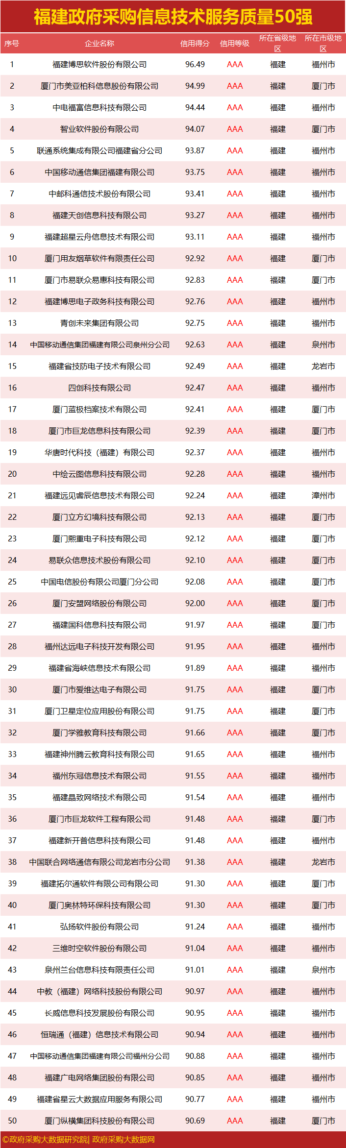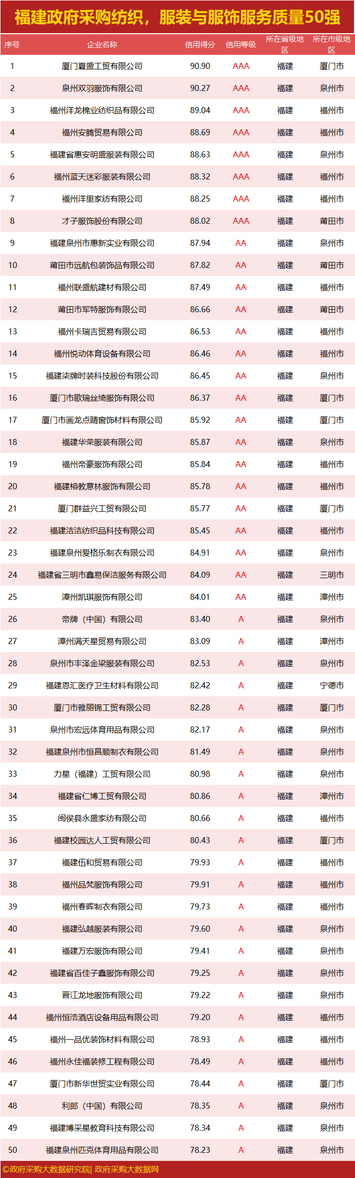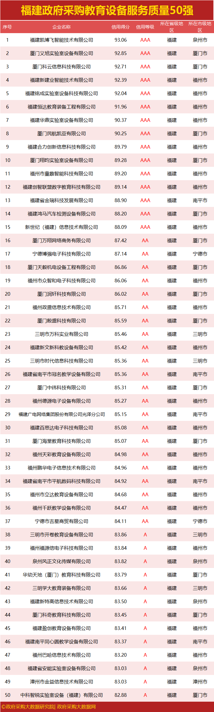 独家|福建政府采购服务质量榜单出炉,您企业上榜了吗?