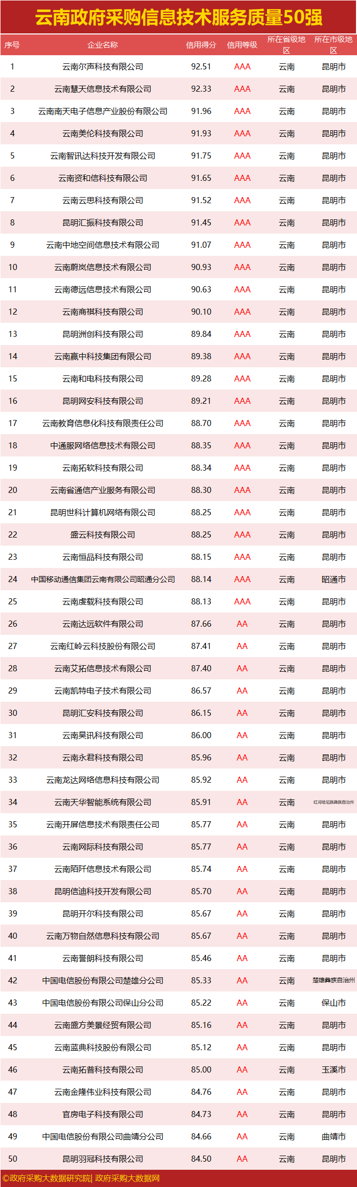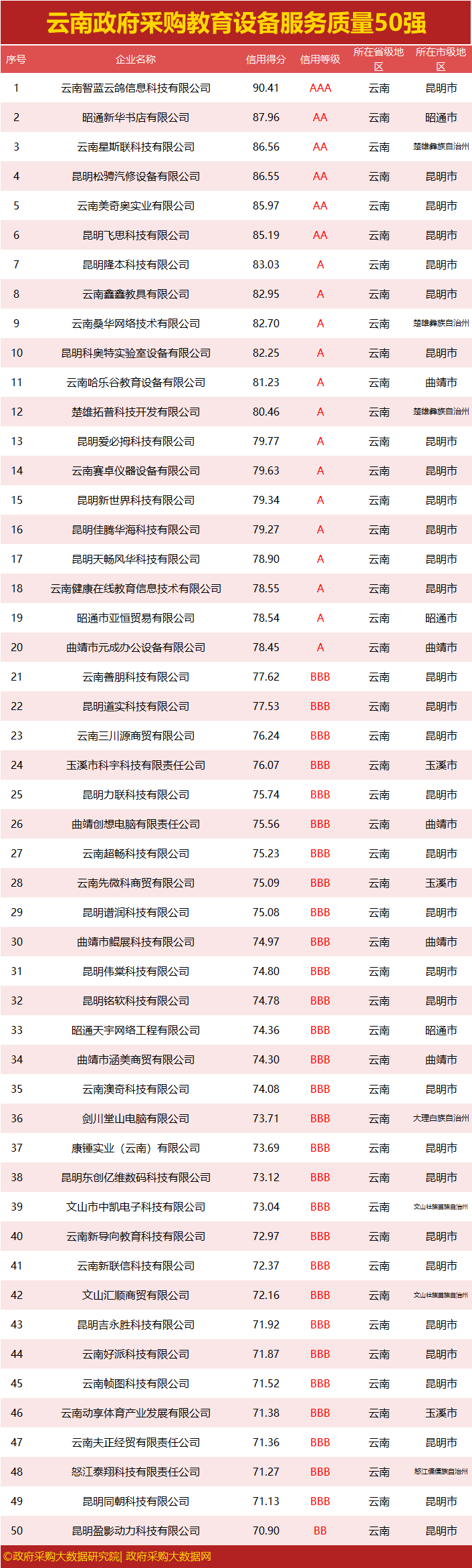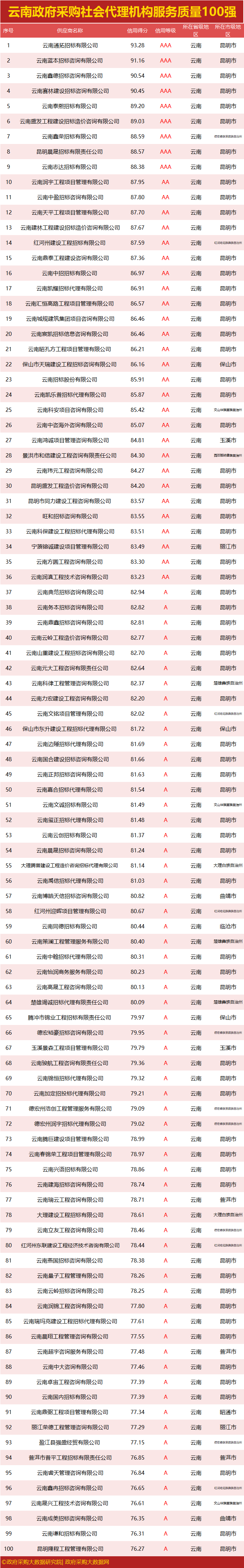 独家|云南政府采购服务质量榜单来袭,行业第一花落谁家?