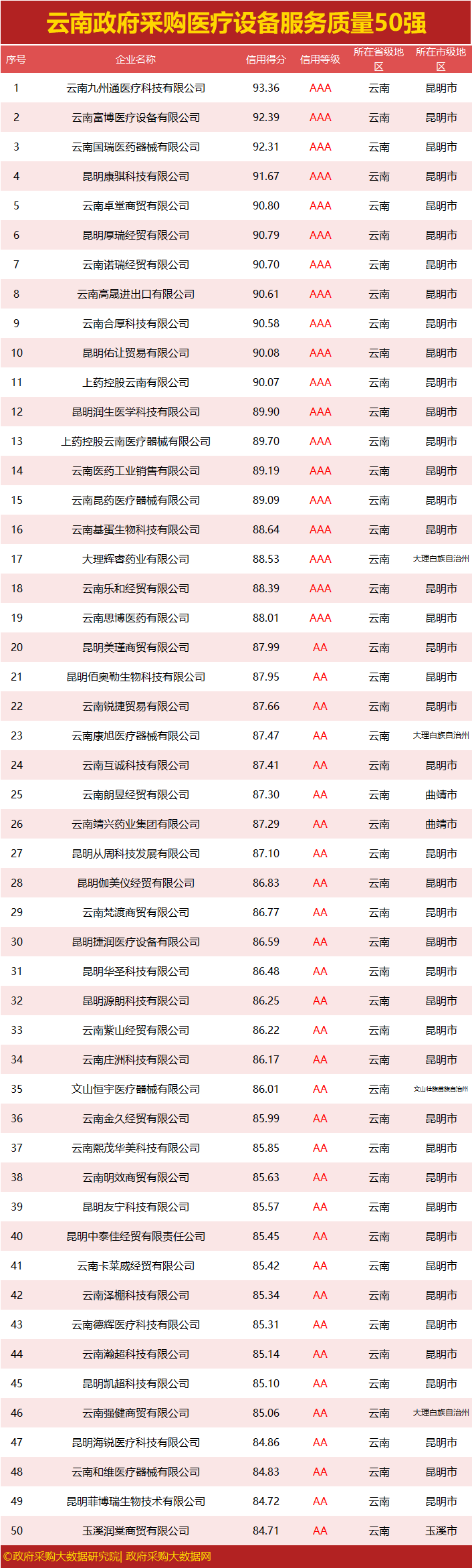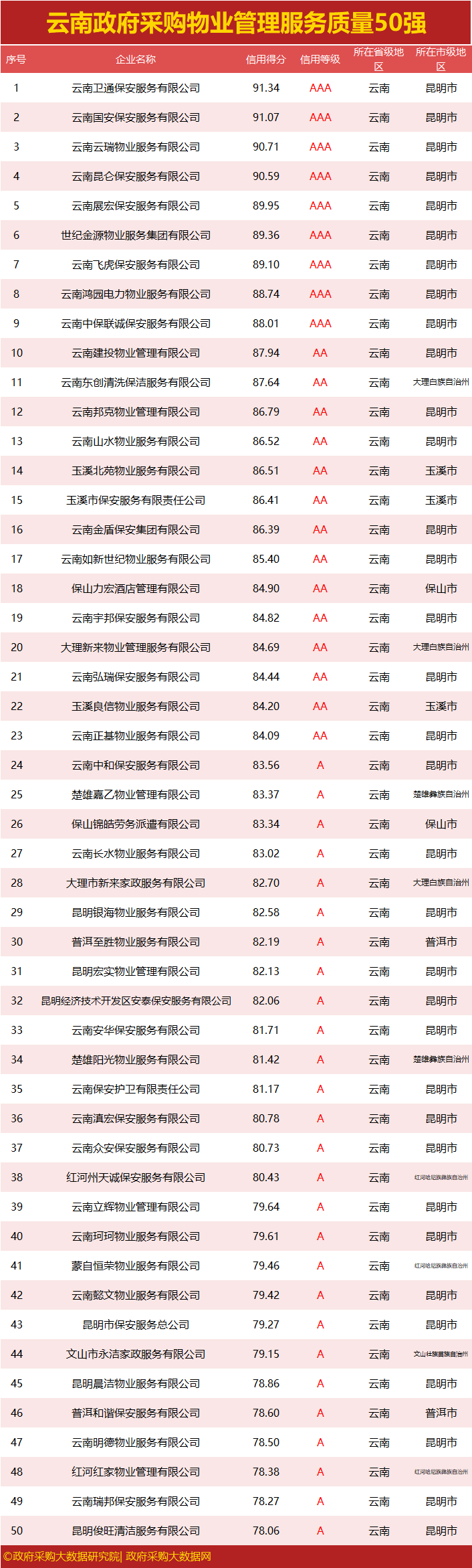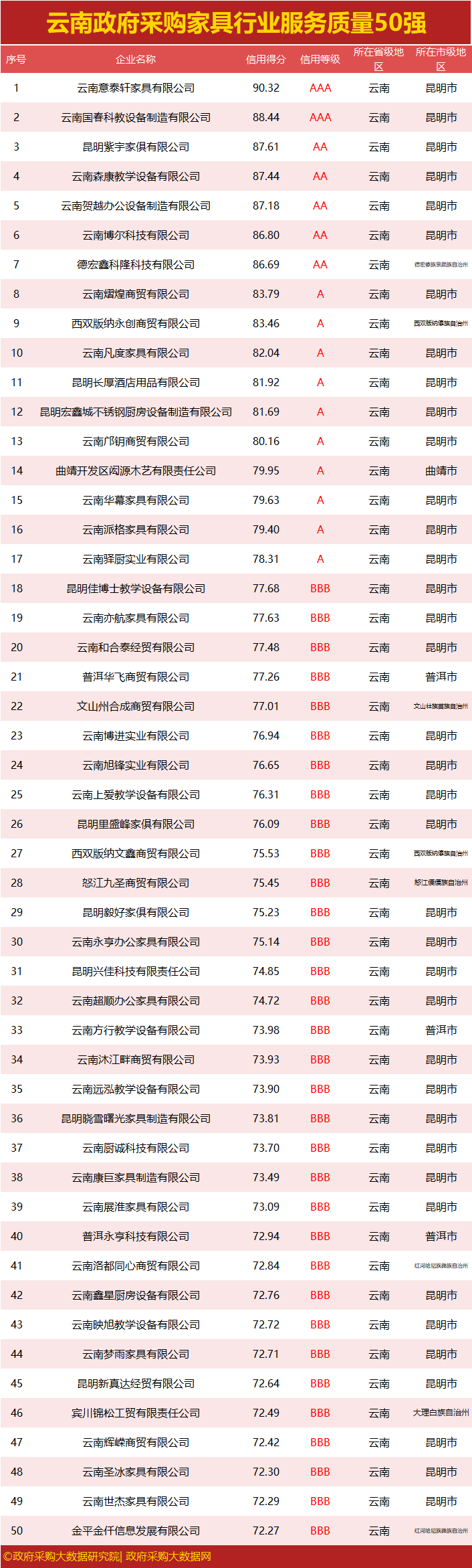 独家|云南政府采购服务质量榜单来袭,行业第一花落谁家?